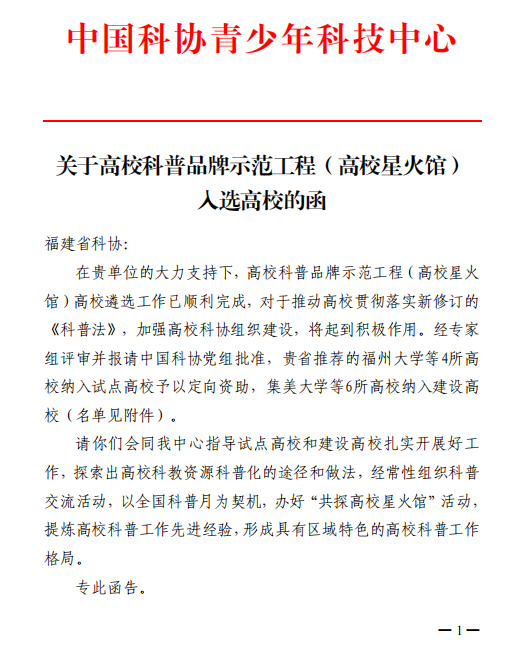 此次入選“高??破掌放剖痉豆こ蹋ǜ咝P腔痧^)”,是對我院服務(wù)社會、普及科學(xué)知識能力的充分肯定。作為建設(shè)高校,學(xué)院將在中國科協(xié)青少年科技中心與福建省科協(xié)的共同指導(dǎo)下,緊密結(jié)合自身專業(yè)特色與職業(yè)教育優(yōu)勢,整合資源,扎實推進,打造具有“船政特色”的科普品牌,力爭將“星火館”建設(shè)成為提升師生及公眾科學(xué)素養(yǎng)、服務(wù)區(qū)域創(chuàng)新發(fā)展的重要平臺,為構(gòu)建高校科普工作新格局貢獻力量。