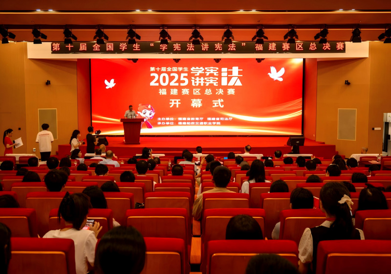 9月27日-28日,第十屆全國(guó)學(xué)生“學(xué)憲法講憲法”福建賽區(qū)總決賽在我院召開(kāi)。本次比賽由福建省教育廳、福建省司法廳主辦,福建船政交通職業(yè)學(xué)院承辦。福建省教育廳二級(jí)巡視員王越忠出席并講話(huà),福建省司法廳副廳長(zhǎng)官文勝,福建船政交通職業(yè)學(xué)院黨委書(shū)記陳宜大、院長(zhǎng)陳群,省教育廳政策法規(guī)與行政審批處處長(zhǎng)王飛,省司法廳普法與依法治理處三級(jí)調(diào)研員李志強(qiáng)出席開(kāi)幕式。全省各地市教育局分管法治工作的副局長(zhǎng)、法規(guī)科負(fù)責(zé)人,以及入圍總決賽的250多名大中小學(xué)生選手與指導(dǎo)老師參加了本次活動(dòng)。