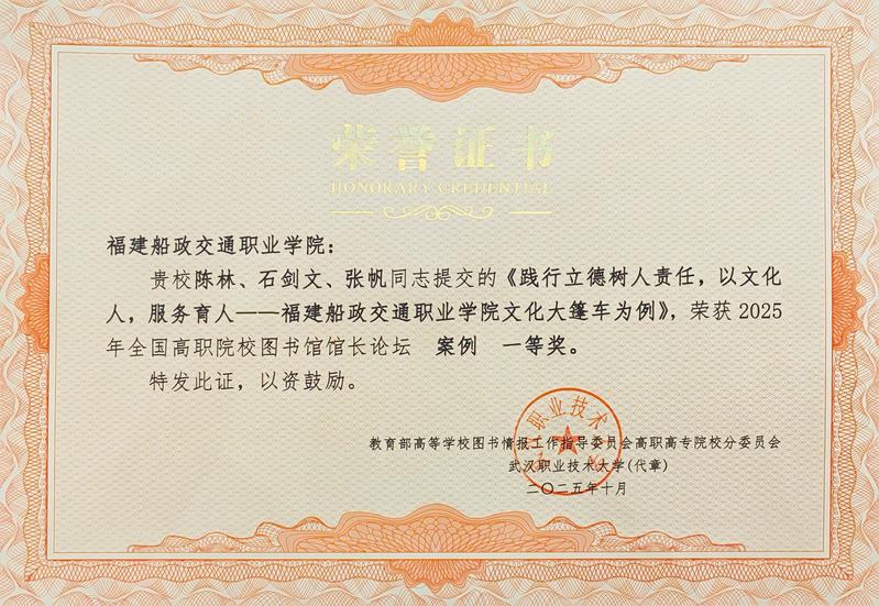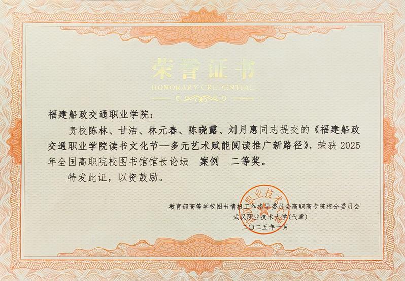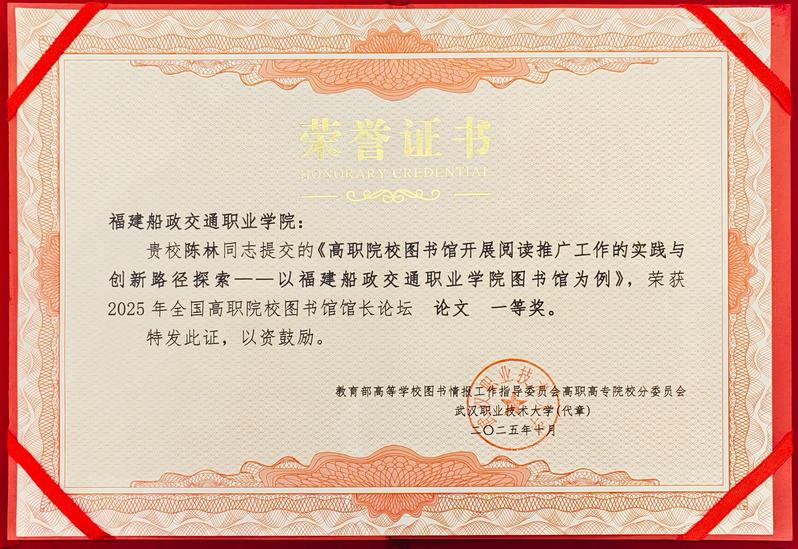 近日,2025年全國高職院校圖書館館長論壇在貴陽舉行。我院圖書館報(bào)送的案例《踐行立德樹人責(zé)任,以文化人,服務(wù)育人》獲評案例類一等獎;案例《多元藝術(shù)賦能閱讀推廣新路徑》獲評案例類二等獎;論文《高職院校圖書館開展閱讀推廣工作的實(shí)踐與創(chuàng)新路徑探索》榮獲論文類一等獎。