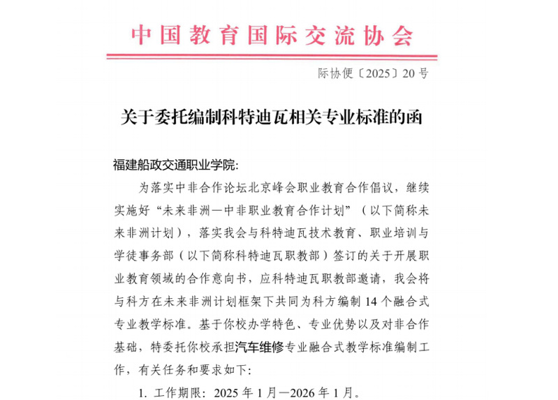 此次入選是學(xué)院多年來深耕非洲開展“職教出?!比〉玫呢S碩成果,也彰顯了學(xué)院教隨產(chǎn)出,隨企出海,校企攜手“走出去”、服務(wù)“一帶一路”倡議、深化中非職業(yè)教育合作的顯著成效。未來,學(xué)院將持續(xù)拓展中非職業(yè)教育合作領(lǐng)域,厚植中非職業(yè)教育合作友誼,不斷提升對(duì)外開放和國際化發(fā)展水平。