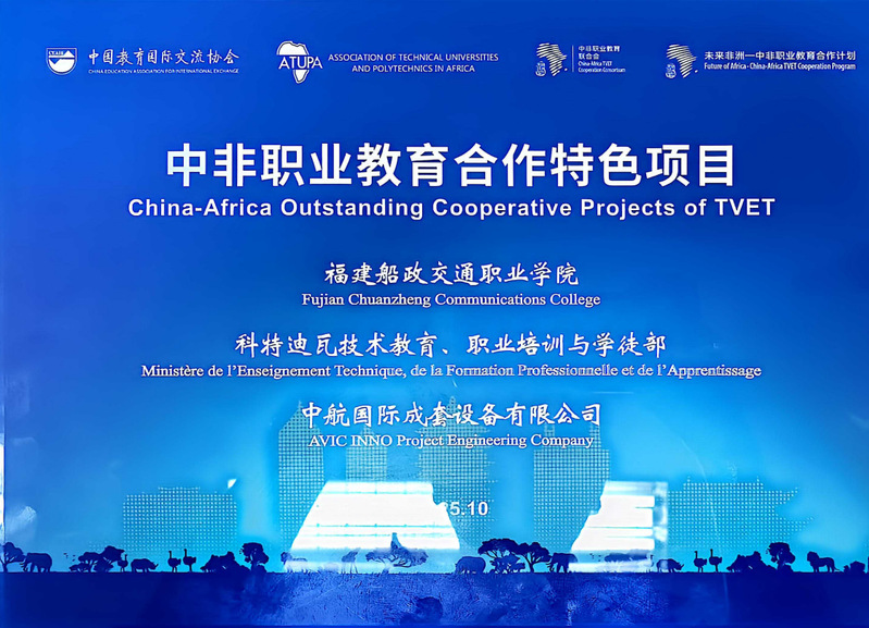 非洲技術(shù)與應(yīng)用型大學(xué)和學(xué)院協(xié)會(huì)秘書長扎哈·法勒向陳艷紅副院長授予“中非職業(yè)教育合作特色項(xiàng)目”牌匾。學(xué)院作為未來非洲—中非職業(yè)教育合作計(jì)劃第一批擴(kuò)容中方院校單位,一直致力中非職教合作,輸出“船政標(biāo)準(zhǔn)”“船政模式”,賦能非洲職業(yè)教育發(fā)展。