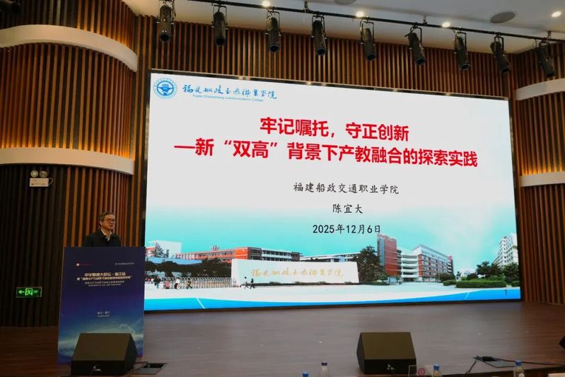 在活動(dòng)交流環(huán)節(jié),陳宜大以《牢記囑托 守正創(chuàng)新——新“雙高”背景下產(chǎn)教融合的探索實(shí)踐》為題,從“產(chǎn)教融合的時(shí)代要求”“船政學(xué)堂的辦學(xué)歷史和產(chǎn)教融合”“福建船政交通職業(yè)學(xué)院產(chǎn)教融合的實(shí)踐”三個(gè)層面,詳細(xì)介紹了學(xué)院傳承船政學(xué)堂“廠校一體、工學(xué)結(jié)合”的辦學(xué)理念,以“辦學(xué)能力高水平、產(chǎn)教融合高質(zhì)量”為導(dǎo)向,在優(yōu)化專業(yè)結(jié)構(gòu)布局、創(chuàng)新產(chǎn)教融合新路徑、構(gòu)建技術(shù)技能服務(wù)平臺(tái)等方面所開(kāi)展的一系列富有成效的實(shí)踐探索,引起了行業(yè)專家、職教同仁以及企業(yè)代表的廣泛共鳴。