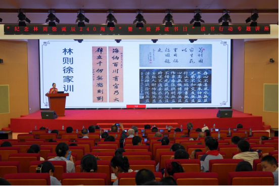 4月19日,主辦方還舉辦了公益講座為讀書(shū)行動(dòng)預(yù)熱。馬尾船政文化研究會(huì)會(huì)長(zhǎng)、福建師范大學(xué)碩士生導(dǎo)師陳悅作《林則徐與福建船政》、林則徐第六代后裔林祝光先生以家族視角分享《林則徐家風(fēng)家訓(xùn)》。講座吸引了船政后裔和福州市林則徐小學(xué)等7所學(xué)校280余名師生代表。