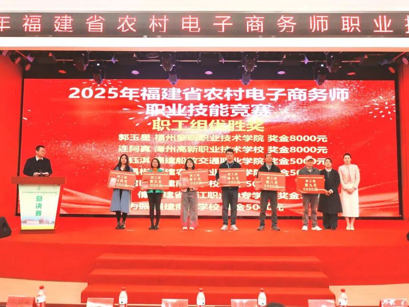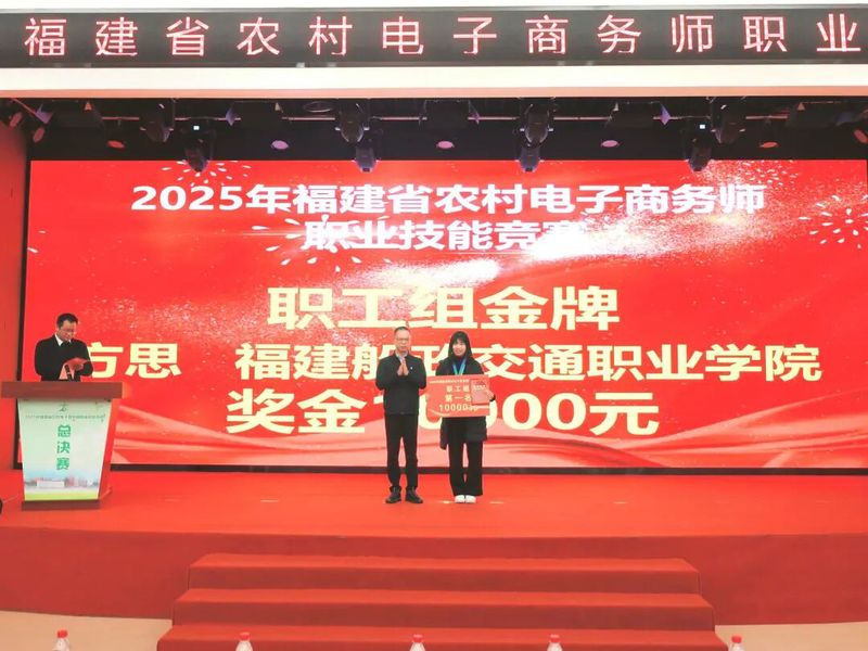 近日,由福建省商務(wù)廳、福建省人力資源和社會保障廳、福建省教育廳、福建省總工會、共青團福建省委聯(lián)合主辦,福建船政交通職業(yè)學(xué)院承辦的2025年福建省農(nóng)村電子商務(wù)師職業(yè)技能競賽圓滿落幕。學(xué)院憑借周密的組織安排與高效的賽事服務(wù),保障了競賽全程嚴(yán)謹(jǐn)有序、公平公正,獲得主辦單位及各參賽隊伍的高度認(rèn)可。我院選派師生在比賽中表現(xiàn)突出,方思老師榮獲大賽第一名(金獎),黃鈺淇老師與學(xué)生陳偉鑫均獲得優(yōu)勝獎,實現(xiàn)了賽事承辦與競賽成績的雙重豐收。