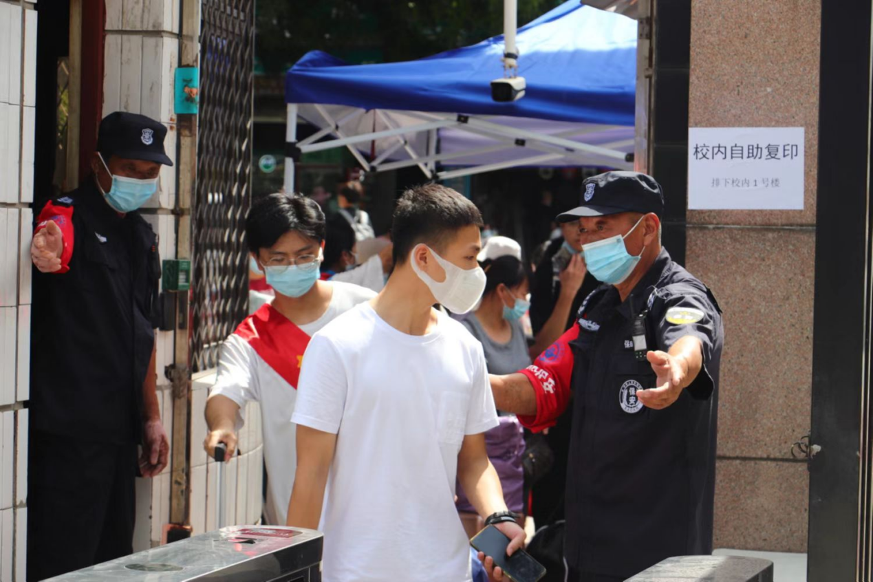 二、明確任務(wù),落實責(zé)任。安全保衛(wèi)處制定了《關(guān)于新生報到日車輛管控的通知》,迎新安保工作以數(shù)字迎新系統(tǒng)為依托,充分利用數(shù)據(jù)可視化技術(shù),精準(zhǔn)把控新生報到峰值時段,靈活調(diào)配保安隊員疏導(dǎo)人流;劃片劃點堅守在各自的崗位上,安排保安隊員指示機動車輛按規(guī)定路線行駛,停放指定區(qū)域,保障校內(nèi)交通順暢、停車有序;安排保衛(wèi)干部專人負(fù)責(zé),加強校園內(nèi)巡邏,取締各種違規(guī)攤點,禁止各類推銷行為;在校園內(nèi)重點位置張貼新生報到示意圖,并安排學(xué)生志愿者進行安全提醒,提高安全防范意識,確保迎新工作平安、穩(wěn)定、高效開展。迎新工作中,大家各司其職,做到認(rèn)識統(tǒng)一、目標(biāo)統(tǒng)一、行動統(tǒng)一,有條不紊,相互協(xié)調(diào)。
