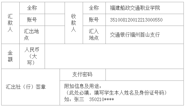 (3)該銀行卡是學(xué)生在校期間每一學(xué)年繳費(fèi)、發(fā)放獎(jiǎng)學(xué)金、各類補(bǔ)助和代辦費(fèi)結(jié)算(如:教材等)的唯一賬戶,并納入計(jì)算機(jī)統(tǒng)一管理,請(qǐng)學(xué)生務(wù)必保管好。如因銀行卡丟失或者失去磁性等原因無法使用,請(qǐng)學(xué)生隨帶身份證到學(xué)校附近的郵政儲(chǔ)蓄銀行網(wǎng)點(diǎn)重新辦卡,并到學(xué)院財(cái)務(wù)處備案,以便統(tǒng)一管理。聯(lián)系電話: 0591-83593922、83516150、83511271。