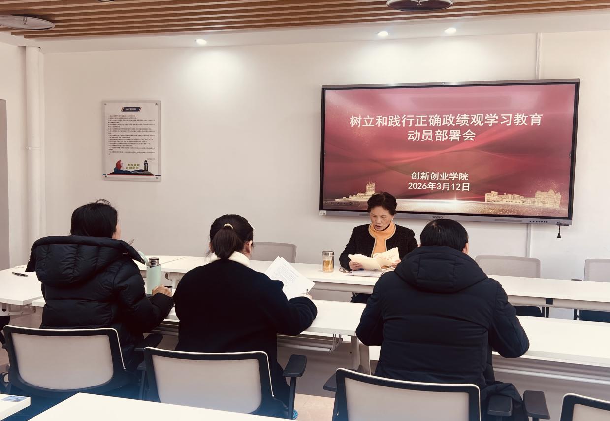 3月12日,創(chuàng)新創(chuàng)業(yè)學(xué)院黨支部組織召開樹立和踐行正確政績(jī)觀學(xué)習(xí)教育動(dòng)員,學(xué)習(xí)了中共中央辦公廳印發(fā)的《關(guān)于在全黨開展樹立和踐行正確政績(jī)觀學(xué)習(xí)教育的通知》以及學(xué)校黨委相關(guān)工作部署和要求,對(duì)支部學(xué)習(xí)教育工作做出全面安排。