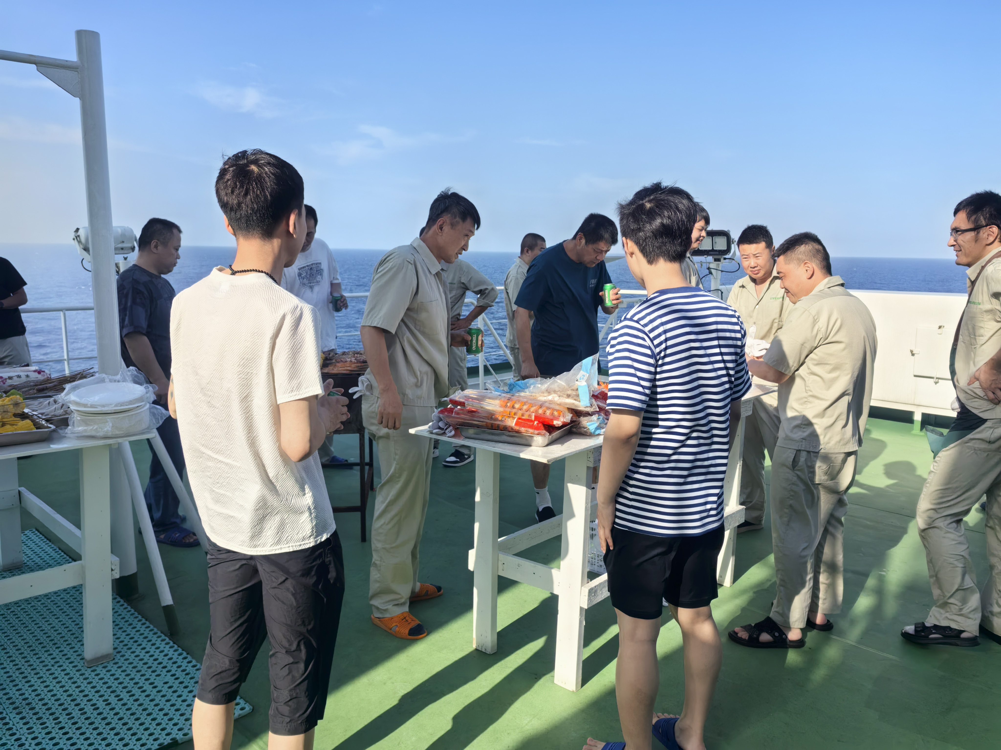塢修期間,我們在船廠迎來了 2025 年春節(jié)。作為剛畢業(yè)不久的學(xué)生,這是我第一次離家這么遠(yuǎn)過年,也是第一次在船上過年。除夕當(dāng)天,船廠放假,我們開始著手準(zhǔn)備年夜飯。作為實(shí)習(xí)生,我主動(dòng)提出幫忙,和大廚一起忙碌。雖然我做菜經(jīng)驗(yàn)不多,但在大廚的耐心指導(dǎo)下,經(jīng)過一番努力,總算順利完成了年夜飯的制作。我和大家一同分享新年的喜悅,還與幾位船員合影留念,定格下這個(gè)特別又有意義的新年瞬間。對于第一次離家過年的我來說,船上輕松愉快的氛圍緩解了我的思鄉(xiāng)之情,同事們的關(guān)心與照顧也讓我倍感溫暖。除夕夜,大家歡聚一堂,一邊享用美食,一邊互送新年祝福。當(dāng)新年鐘聲敲響時(shí),我們共同舉杯,祝愿新的一年航行順利、一帆風(fēng)順。對我而言,這次船上的新年既難忘又珍貴,能和一群志同道合的同事并肩工作,更是一件無比開心的事。都說 “百年修得同船渡”,我為自己能擁有這樣優(yōu)秀的同事團(tuán)隊(duì)而感到幸運(yùn)。