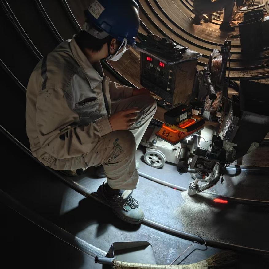 實(shí)習(xí)初期:23年10月,我進(jìn)入福船一帆實(shí)習(xí),我感受到了前所未有的挑戰(zhàn)。進(jìn)入一帆,我最先接觸到的是LNG儲(chǔ)罐項(xiàng)目,這和我在大學(xué)所學(xué)的船舶知識差異顯著,相當(dāng)于一個(gè)全新的開始。但當(dāng)割刀切割鋼板時(shí)迸發(fā)的絢麗的火花讓我瞬間愛上了這份工作。