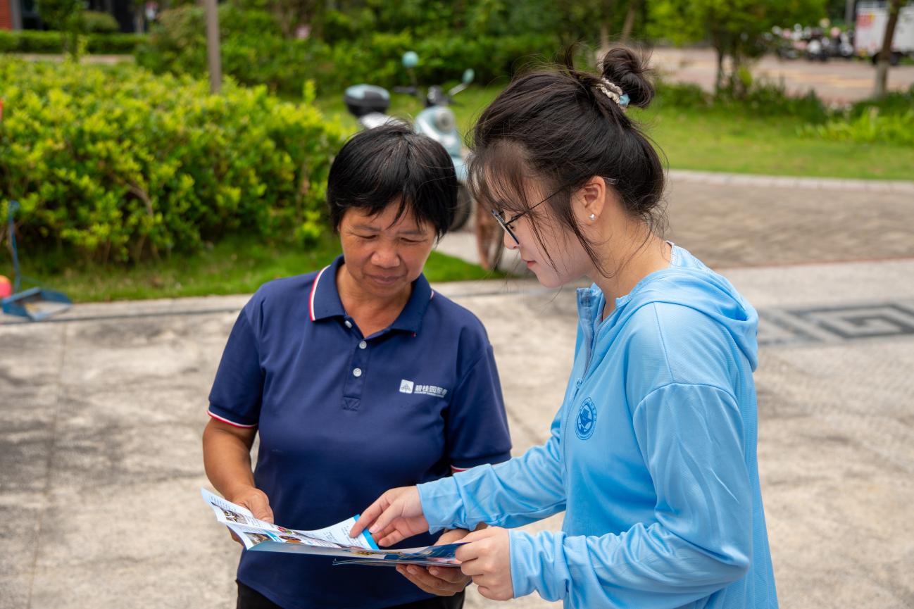 圖2:實踐團在汀洲郡發(fā)放禁毒宣傳單