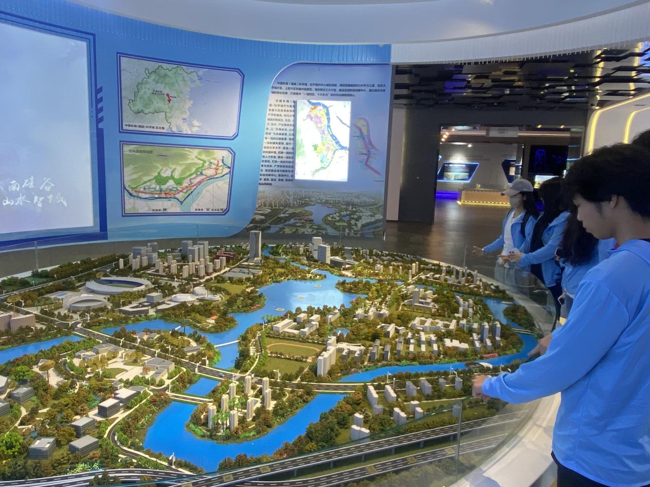 巨大的城市沙盤、炫目的數(shù)字光影,實踐團瞬間從“過去”穿越到“未來”。在這里,實踐團清晰地看到福州從“三山兩塔一條江”的古城,邁向現(xiàn)代化國際城市的宏偉藍圖?!?820”戰(zhàn)略工程的構(gòu)想,福州新區(qū)的朝氣蓬勃,讓實踐團真切地觸摸到福州發(fā)展的強勁脈搏。