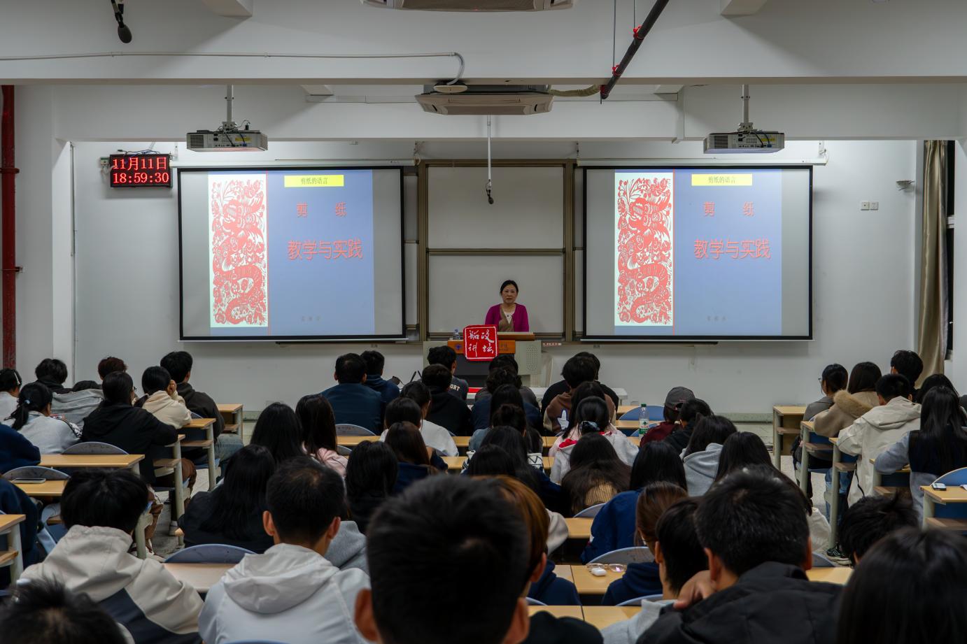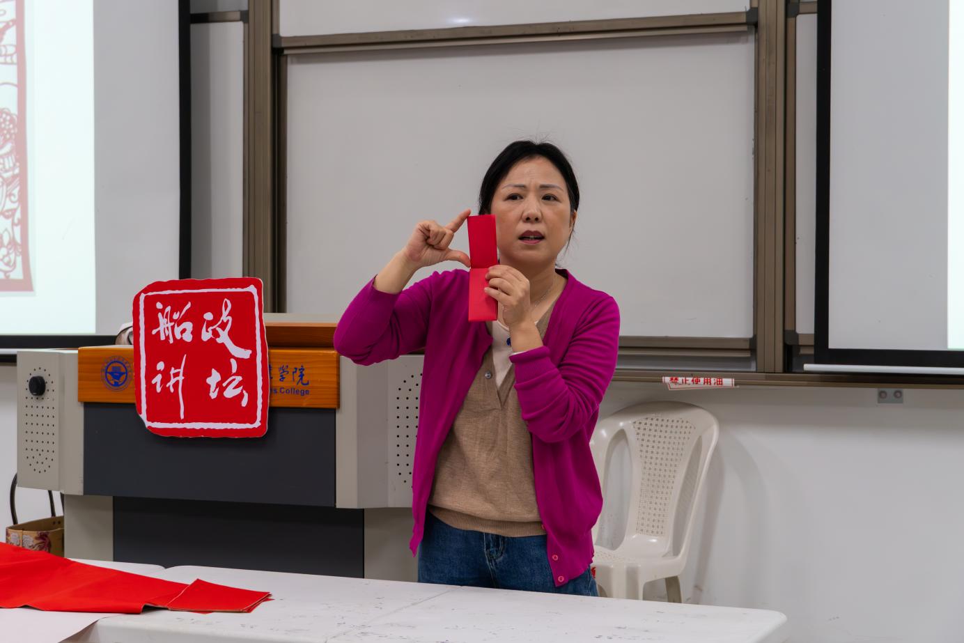 剪紙是中國民間美術(shù)的璀璨明珠,承載著中華民族數(shù)千年的文化基因與審美智慧。2025年11月11日,土木工程學院特邀福州剪紙非遺傳承人董雅萍老師,于福船園創(chuàng)新樓301作題為“紙韻剪影:民間剪紙鑒賞”的精彩講座,師生共同踏上一場領略民間剪紙藝術(shù)魅力的探尋之旅。