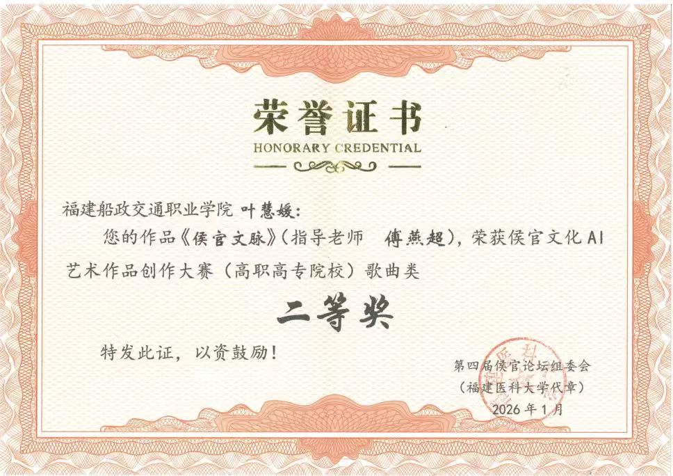 近日,由福建省教育廳指導(dǎo)、福建醫(yī)科大學(xué)主辦的侯官文化AI藝術(shù)作品創(chuàng)作大賽公布獲獎(jiǎng)名單。土木工程學(xué)院選送的2件作品脫穎而出,在視頻類及歌曲類賽道中獲二等獎(jiǎng)2項(xiàng)。