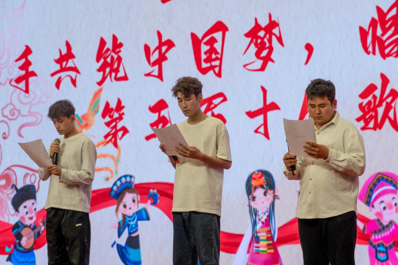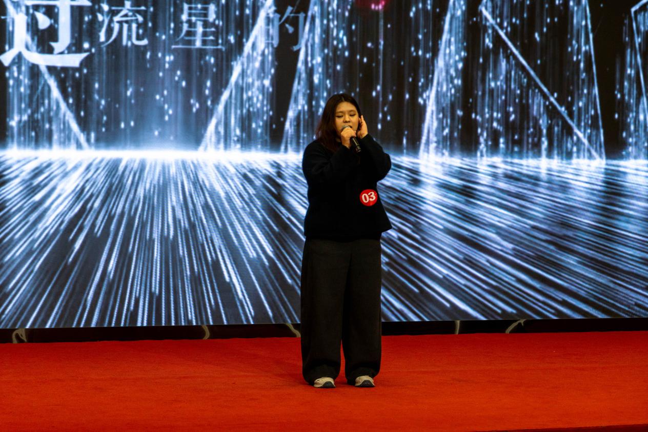 經(jīng)過前期的初賽評選,共有十位選手晉級決賽。賽前,三位來自新疆的少數(shù)民族學(xué)子以《同心筑夢,聚力前行》為題,獻(xiàn)上了一場飽含深情的朗誦表演。比賽時,選手們以不同的音樂風(fēng)格重新演繹經(jīng)典,演唱的每一首歌曲都承載著深厚的民族情感和青年的使命擔(dān)當(dāng),他們的出色表現(xiàn)讓觀眾掌聲雷動。比賽間隙設(shè)有抽獎環(huán)節(jié),增進(jìn)了同學(xué)間的交流互動。最終,經(jīng)評委和大眾評審共同評選出十佳歌手的獲獎排名。