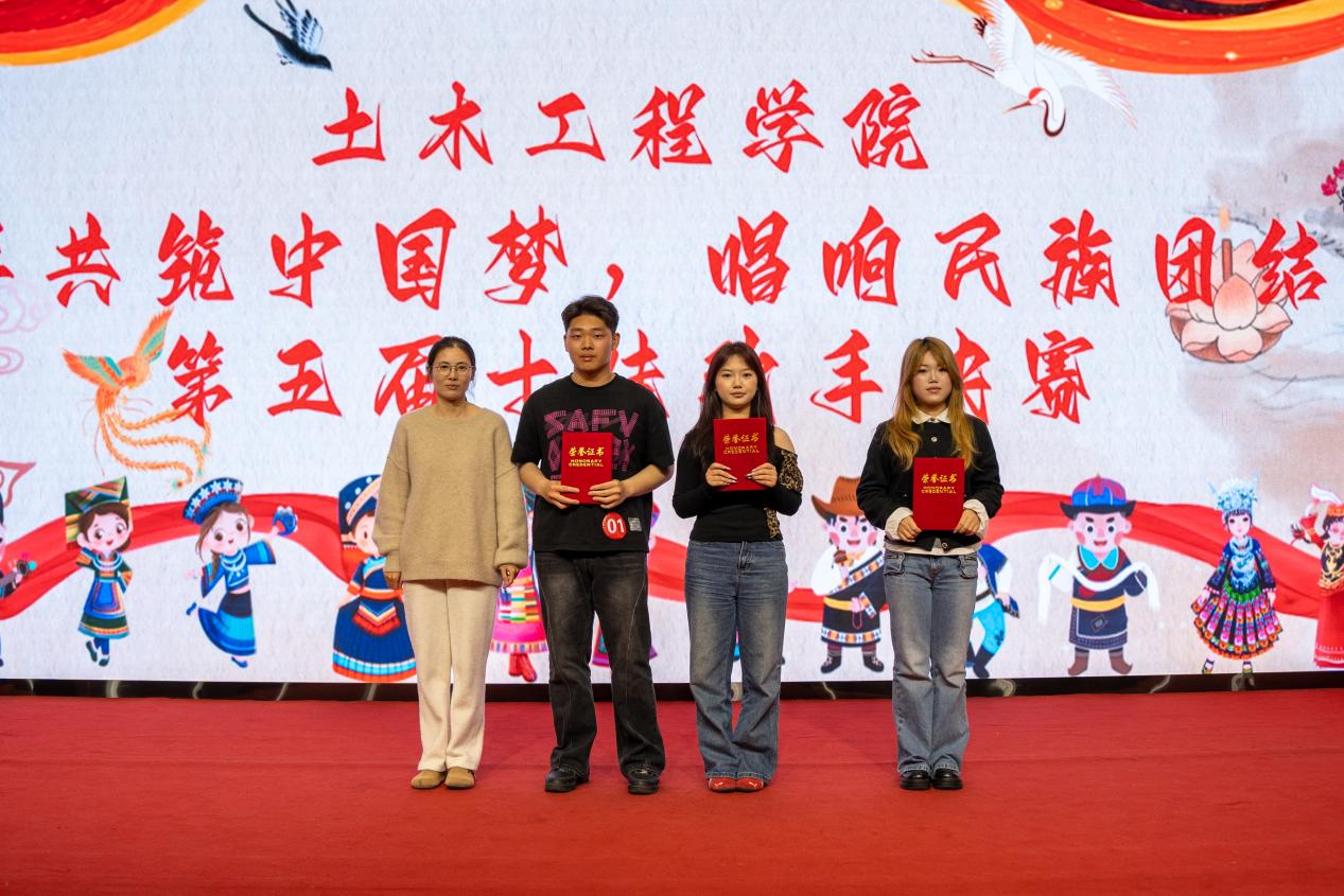 比賽在熱烈而溫馨的氛圍中圓滿落幕,全體參賽選手、指導(dǎo)老師及工作人員齊聚舞臺,共同定格下這一美好而珍貴的瞬間。此次比賽不僅為學(xué)子搭建了藝術(shù)展示平臺,更凝聚了民族團(tuán)結(jié)力量,讓民族同心筑夢的理念深植青年心中。下一步,學(xué)院將繼續(xù)以校園文化活動為載體,厚植民族情懷,引導(dǎo)青年為民族團(tuán)結(jié)和中國夢貢獻(xiàn)青春力量。