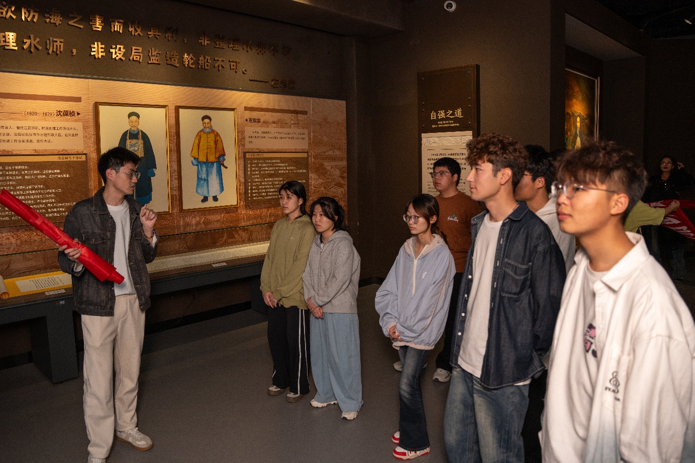 活動現(xiàn)場,同學(xué)們參觀各大主題展區(qū),系統(tǒng)了解船政創(chuàng)辦背景、近代船舶工業(yè)發(fā)展與海防建設(shè)的艱辛歷程。那些泛黃的老照片與斑駁的實物展品,正無聲地訴說著一段跨越百年的故事。大家認(rèn)真聆聽講解、駐足觀看展品,各民族同學(xué)邊走邊交流心得,在輕松融洽的氛圍里相互了解、彼此靠近,真切感受到先輩們?yōu)閲鴵?dān)當(dāng)、開拓進取的精神力量。