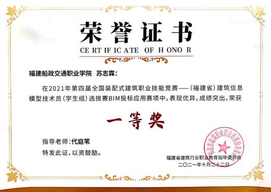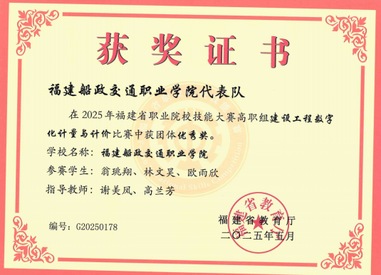 以賽促學(xué),成績斐然:依托經(jīng)驗(yàn)豐富的指導(dǎo)教師團(tuán)隊及BIM社團(tuán),學(xué)生在各級各類高水平賽事中屢獲佳績,近3年學(xué)生獲國家級獎項(xiàng)7項(xiàng),省一等獎9項(xiàng)。2025年專業(yè)學(xué)生代表福建省出戰(zhàn)第三屆國賽“數(shù)字建造”賽項(xiàng),斬獲全國優(yōu)勝獎,實(shí)現(xiàn)福建省在該賽項(xiàng)國賽中優(yōu)勝獎“零的突破”。