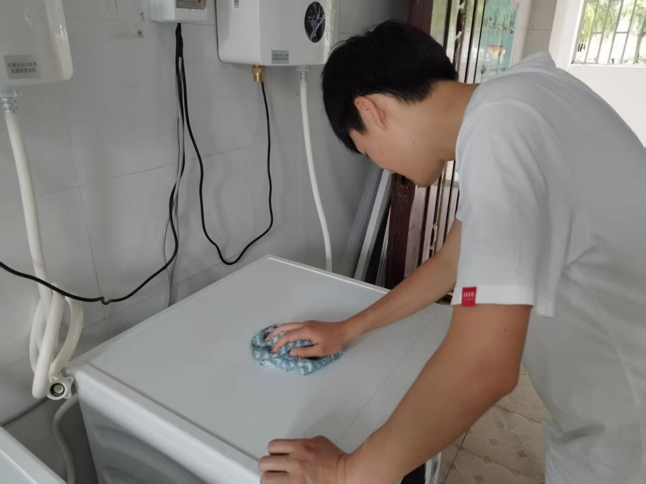 圖4 志愿者仔細(xì)擦拭洗衣機(jī)外部