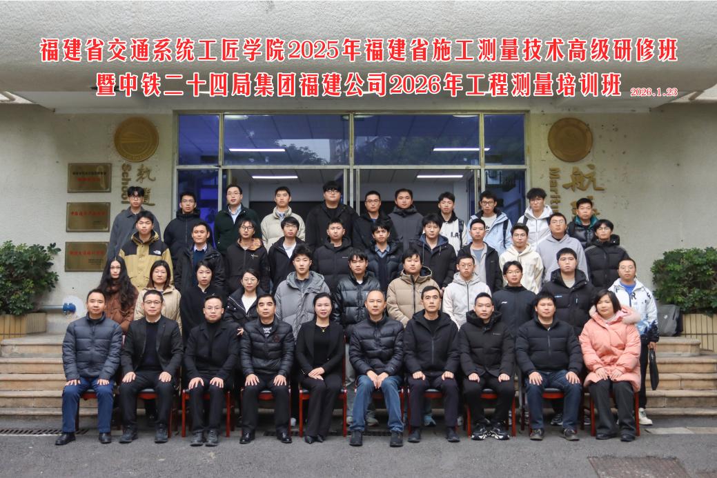 2026年1月23日上午,由福建船政交通職業(yè)學(xué)院軌道交通學(xué)院承辦的“福建省交通系統(tǒng)工匠學(xué)院2025年福建省施工測(cè)量技術(shù)高級(jí)研修班暨中鐵二十四局集團(tuán)福建公司2026年工程測(cè)量培訓(xùn)班”在福建船政交通職業(yè)學(xué)院校友樓軌道學(xué)院三樓會(huì)議室順利開(kāi)班。中鐵二十四局集團(tuán)福建公司總工程師林劍忠、工程管理部部長(zhǎng)洪淮斌、黨委干部部副部長(zhǎng)王燁、測(cè)繪中心主任曾志鑫,學(xué)校工會(huì)常務(wù)副主席、福建省交通系統(tǒng)工匠學(xué)院副院長(zhǎng)王雪梅、軌道交通學(xué)院黨政領(lǐng)導(dǎo)、中鐵二十四局集團(tuán)福建公司全體培訓(xùn)學(xué)員、軌道交通學(xué)院教師代表及工作人員參加儀式。開(kāi)班儀式由軌道交通學(xué)院副院長(zhǎng)陳宏意主持。