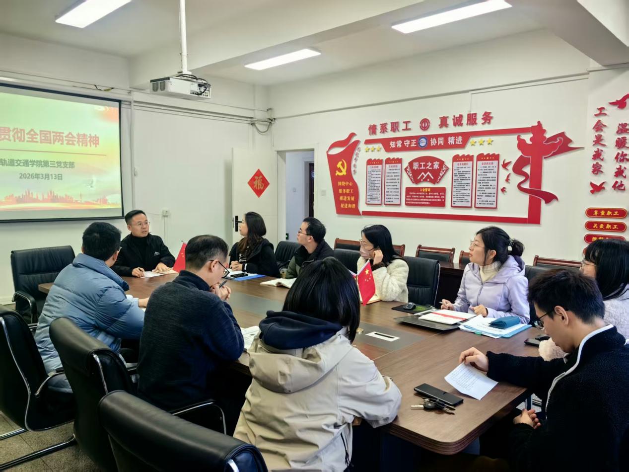 此次支部學(xué)習(xí)活動,進一步深化了全體黨員對2026年全國兩會精神的理解和把握,凝聚了支部奮進力量,明確了工作方向。下一步,軌道交通學(xué)院第三黨支部將持續(xù)推進兩會精神學(xué)習(xí)走深走實,常態(tài)化開展專題學(xué)習(xí)、實踐研討等活動,引導(dǎo)全體黨員以兩會精神為指引,堅守為黨育人、為國育才初心,立足崗位、奮勇爭先,將學(xué)習(xí)成效轉(zhuǎn)化為履職盡責(zé)的強大動力,為培養(yǎng)高素質(zhì)軌道交通人才、助力軌道交通行業(yè)數(shù)智化轉(zhuǎn)型、服務(wù)交通強國建設(shè)貢獻支部智慧和力量。