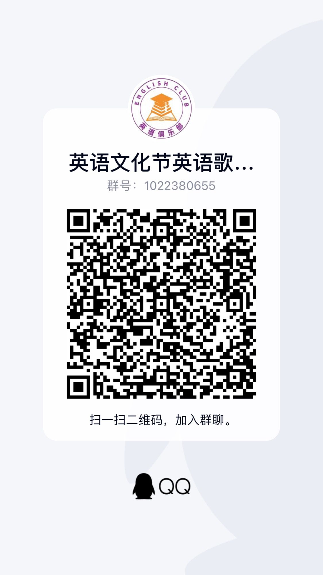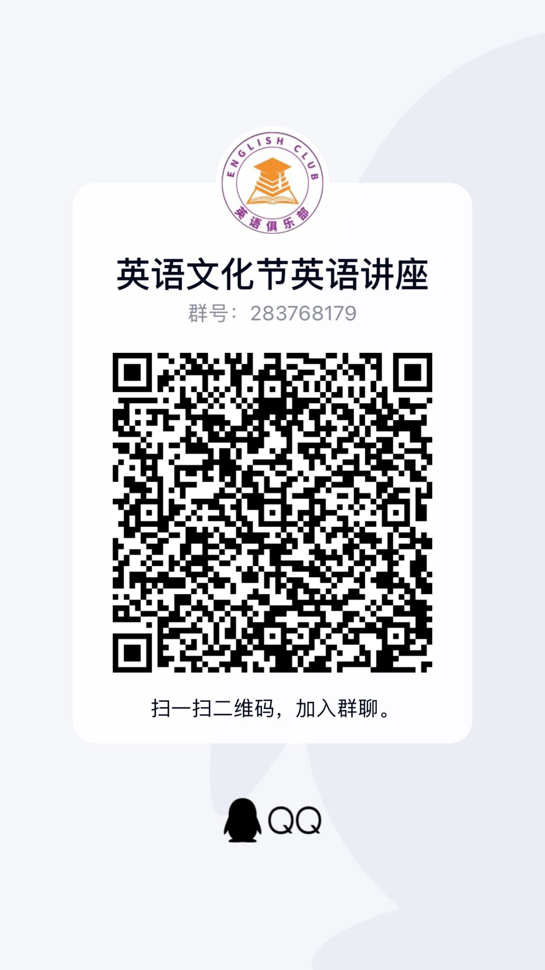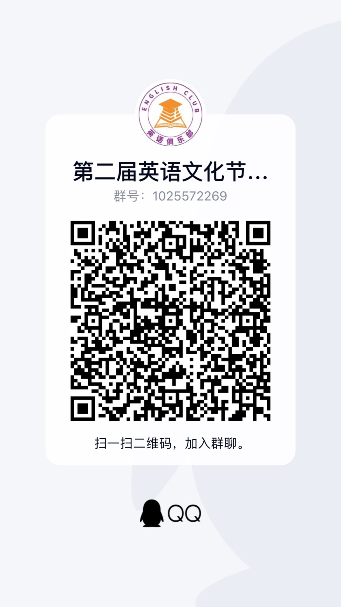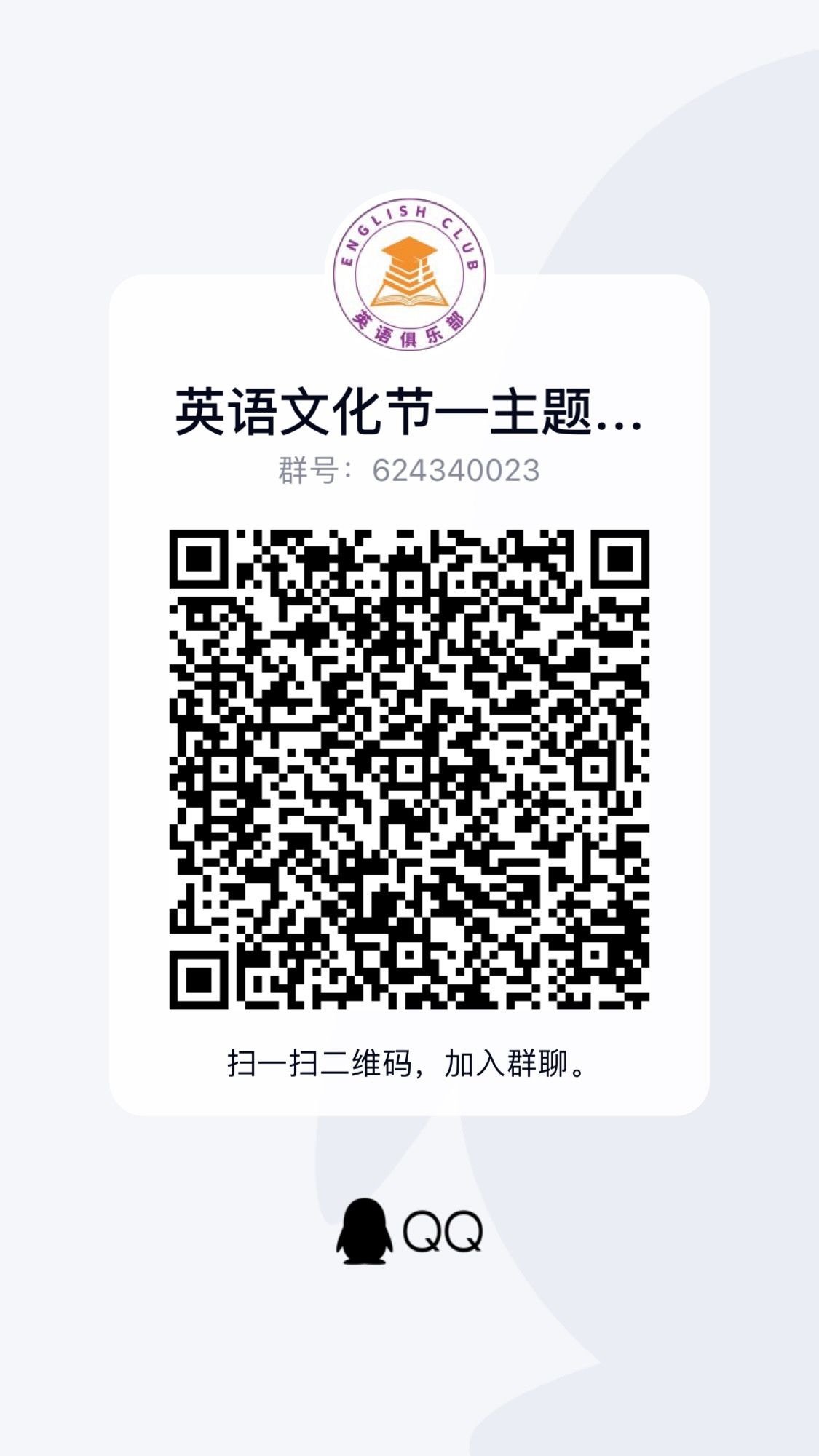 掃碼加入Q群并在三全育人平臺(tái)搜索關(guān)鍵詞“英語文化節(jié)”找到相應(yīng)活動(dòng)進(jìn)行報(bào)名
