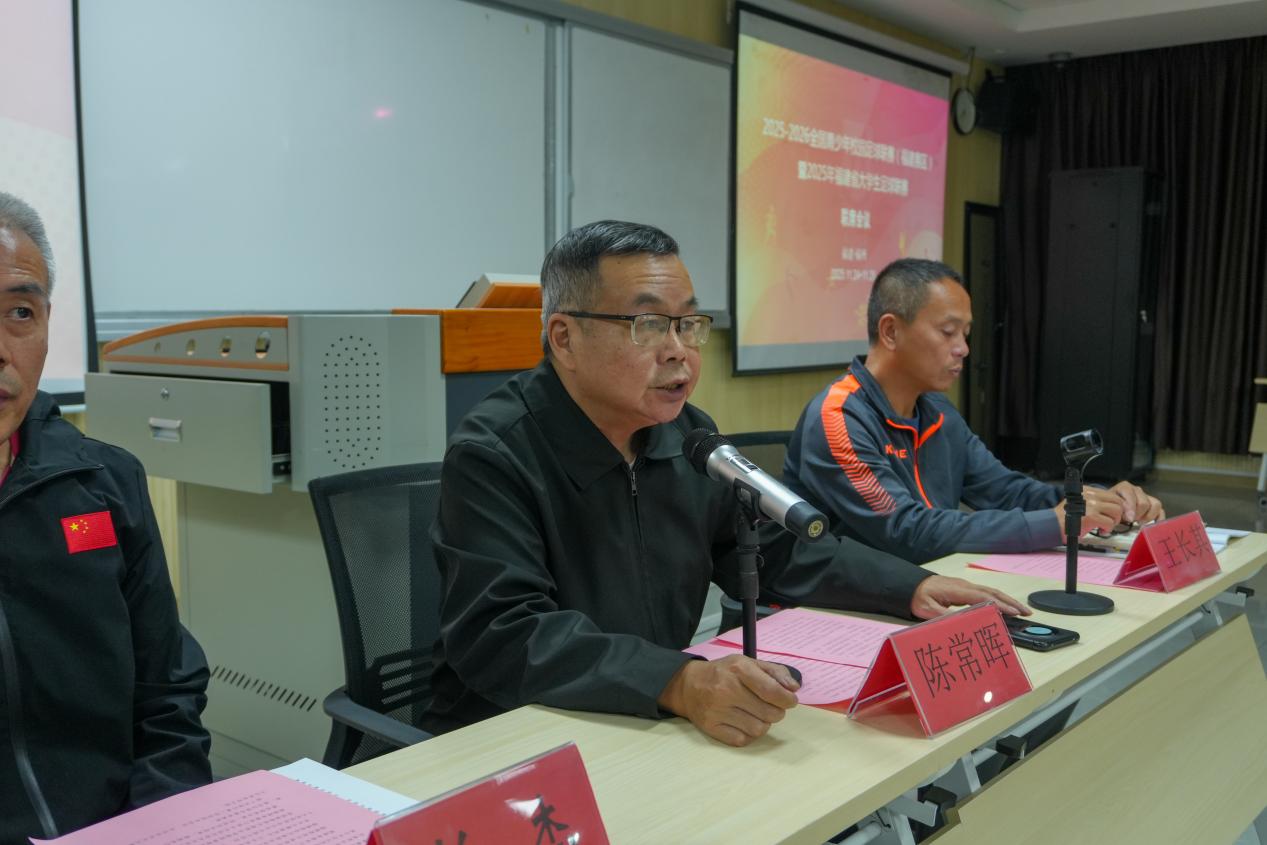 近日,由福建省教育廳主辦、我院承辦的2025年福建省大學(xué)生足球聯(lián)賽(男子乙組、女子丙B組)賽前聯(lián)席會(huì)議順利召開(kāi)。福建省教育廳體衛(wèi)藝語(yǔ)處二級(jí)調(diào)研員彭杰、學(xué)院副院長(zhǎng)陳常暉出席會(huì)議,通識(shí)教育學(xué)院黨政負(fù)責(zé)人、比賽監(jiān)督人員、裁判長(zhǎng)以及各參賽高校領(lǐng)隊(duì)、教練員參加會(huì)議。會(huì)議由通識(shí)教育學(xué)院郭建忠主持。