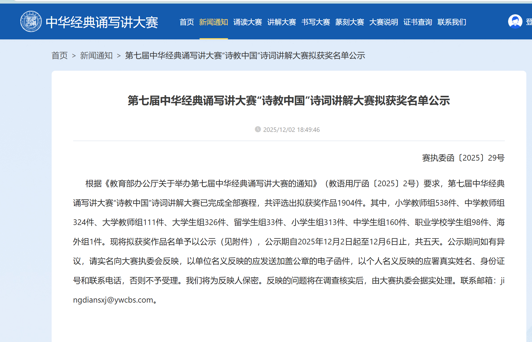 本屆大賽由教育部、國家語委主辦,以“典耀中華,賡續(xù)文脈”為主題,是全國性語言文化傳承標桿賽事。我校學生葉文濤的參賽作品選取艾青經典詩作,通過散文化的自由句式與真摯情感表達,既展現了舊中國勞動婦女的苦難與堅韌,又傳遞出對母愛與土地的深情禮贊,契合大賽“體悟文化內涵、激發(fā)文化自信”的宗旨。備賽過程中,指導團隊深挖作品背景,結合艾青1933年獄中創(chuàng)作的時代語境,通過聲韻調控、情感層次鋪陳及背景視頻的意境烘托,最終以6分鐘高清視頻形式呈現,并在現場比賽中獲評委高度認可。