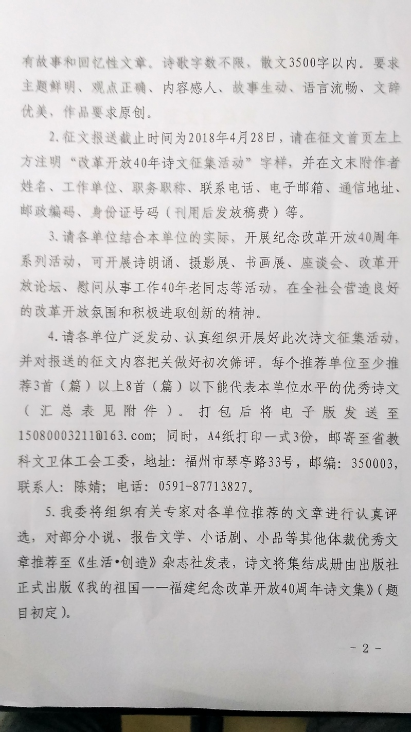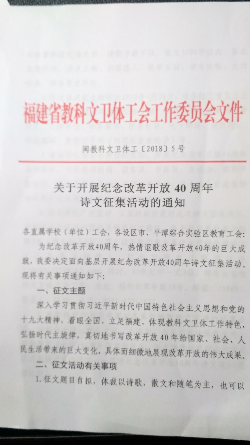 關(guān)于開展改革開放40周年詩文征集活動的通知