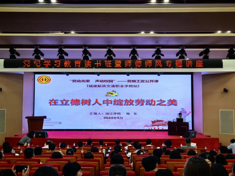 勞動(dòng)譜寫時(shí)代華章,奮斗創(chuàng)造美好未來。5月8日上午,學(xué)院成功舉辦“勞動(dòng)光榮 聲動(dòng)校園”勞模工匠公開課,閩江學(xué)院馬克思主義學(xué)院院長(zhǎng)陳東講授題為“在立德樹人中綻放勞動(dòng)之美”的公開課。活動(dòng)在南區(qū)藝新樓三樓331第一學(xué)術(shù)報(bào)告廳舉辦,全體副科級(jí)及以上干部,支部書記、副書記,組織員,新入職教師等參加活動(dòng)。