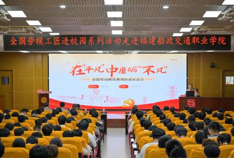 為深入學(xué)習(xí)貫徹黨的二十大精神和習(xí)近平總書記在慶祝中華全國(guó)總工會(huì)成立100周年暨全國(guó)勞動(dòng)模范和先進(jìn)工作者表彰大會(huì)上的重要講話精神,大力弘揚(yáng)勞模精神、勞動(dòng)精神、工匠精神,引導(dǎo)廣大師生牢固樹立“勞動(dòng)最光榮、勞動(dòng)最崇高、勞動(dòng)最偉大、勞動(dòng)最美麗”的價(jià)值觀念,讓崇尚勞動(dòng)、尊重勞動(dòng)的風(fēng)尚在校園蔚然成風(fēng),5月22日下午,由福建省總工會(huì)主辦、學(xué)院工會(huì)承辦的“全國(guó)勞模工匠進(jìn)校園系列活動(dòng)-勞模工匠大講堂”主題講座在福道園1號(hào)樓學(xué)術(shù)報(bào)告廳舉辦。本次活動(dòng)邀請(qǐng)到全國(guó)勞動(dòng)模范、國(guó)網(wǎng)福州供電公司鼓樓坊巷供電站站長(zhǎng)黃頌作主題為《在平凡中鑄就不凡,用堅(jiān)守點(diǎn)亮初心》的專題講座,省教科文衛(wèi)體工委二級(jí)調(diào)研員左修坤,學(xué)院工會(huì)、機(jī)械與智能制造學(xué)院黨政領(lǐng)導(dǎo)班子及二百余名師生參加活動(dòng)。