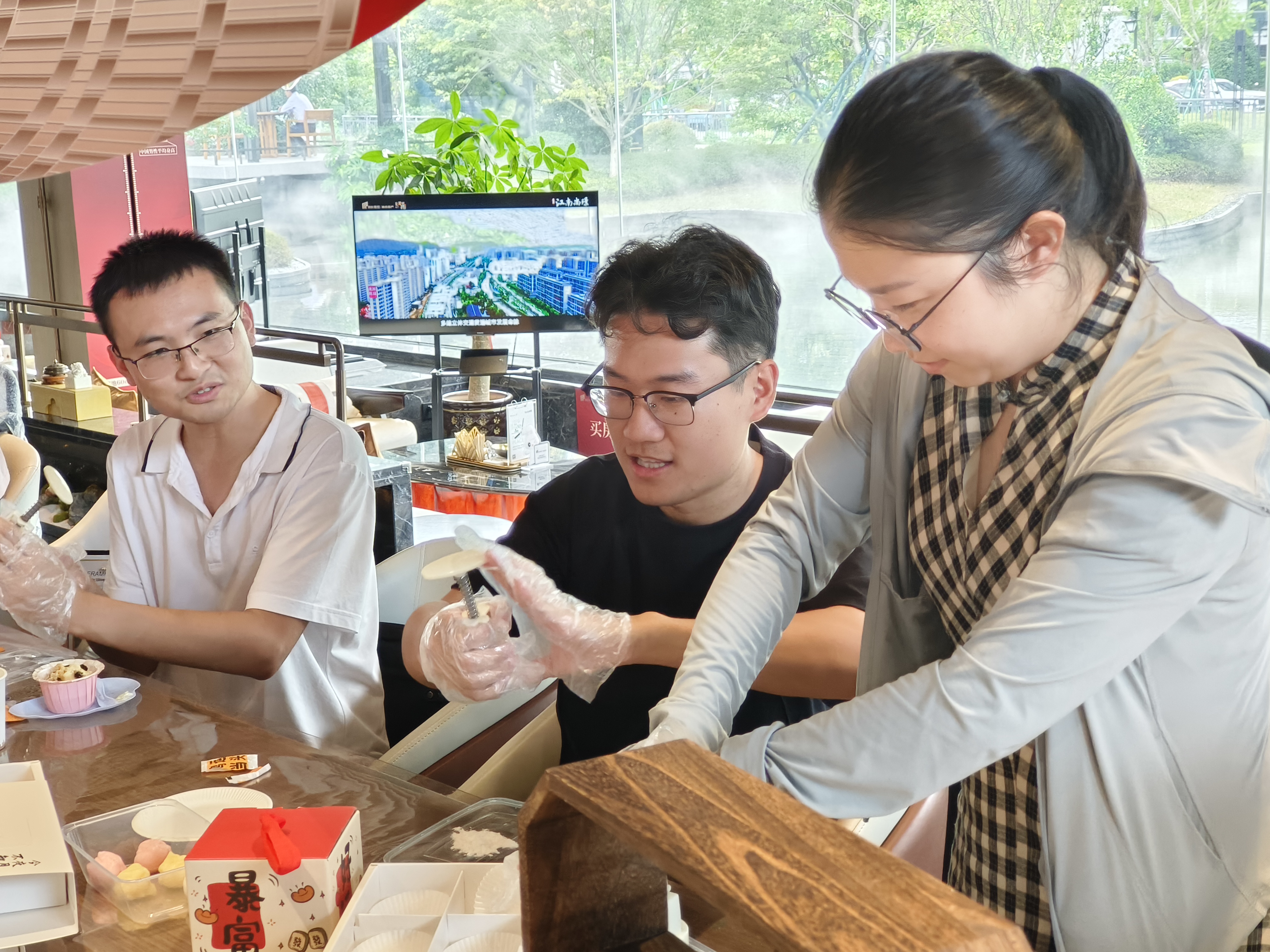 活動(dòng)現(xiàn)場(chǎng)節(jié)日氣氛濃厚。趣味燈謎區(qū)懸掛著五彩繽紛的謎箋,涵蓋傳統(tǒng)文化、民俗知識(shí)、生活體驗(yàn)等豐富內(nèi)容;兌獎(jiǎng)區(qū)藍(lán)牙音響、遮陽(yáng)傘、生活套裝等實(shí)用禮品吸引老師們踴躍參與;茶歇區(qū)精致可口的水果點(diǎn)心,為老師們提供交流互動(dòng)輕松氛圍;手工冰皮月餅DIY環(huán)節(jié),老師們在面點(diǎn)師傅講解指導(dǎo)下,動(dòng)手揉面、包餡、壓模,制作出造型雅致、寓意團(tuán)圓的冰皮月餅,共同感受中華傳統(tǒng)節(jié)日的文化魅力與船政大家庭的溫暖情誼。