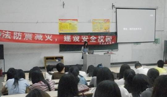 2013年5月15日,交通經(jīng)濟系在排下校區(qū)舉辦了防震減災(zāi),建設(shè)安全校園的主題講座。通過講座,讓同學(xué)們對地震有了深刻的認(rèn)識和理解,豐富了同學(xué)們防震抗震的知識,增強了同學(xué)們防震抗震的意識和能力。