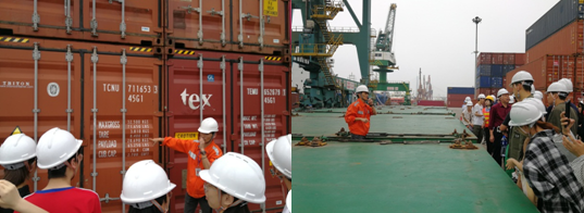 圖8講解船舶和靠泊知識(shí) 圖9 講解集裝箱裝卸船作業(yè)