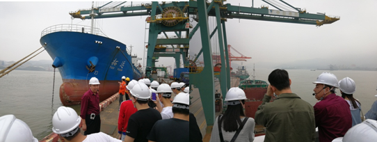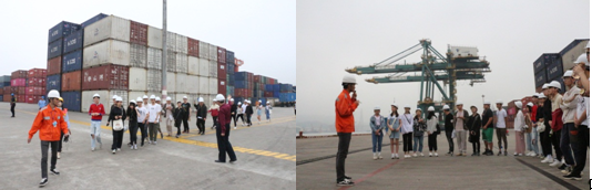 在海盈碼頭工作人員的引導(dǎo)下,同學(xué)們有序進(jìn)入碼頭前沿,由海盈碼頭操作部經(jīng)理助理王勇介紹碼頭的安全注意事項(xiàng),并利用碼頭的資源,向?qū)W生介紹集裝箱、碼頭構(gòu)造、機(jī)械設(shè)備、艙蓋板和倉(cāng)庫(kù)等方面的知識(shí),也詳細(xì)介紹了集裝箱在碼頭內(nèi)部的整個(gè)流轉(zhuǎn)過(guò)程。