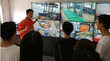 最后,同學(xué)們前往海盈碼頭的計(jì)劃科和中控室進(jìn)行參觀,了解碼頭作業(yè)計(jì)劃方面的知識(shí),同時(shí),對(duì)中控室的功能進(jìn)行學(xué)習(xí),同學(xué)們對(duì)監(jiān)控系統(tǒng)表現(xiàn)出濃厚的興趣,王助理也詳細(xì)為同學(xué)們講解了監(jiān)控系統(tǒng)的功能及應(yīng)用。