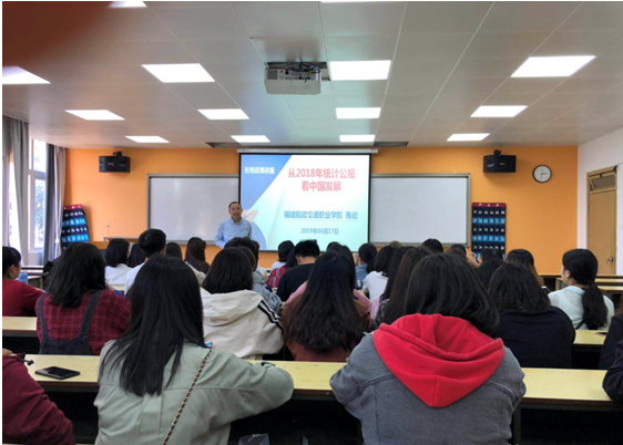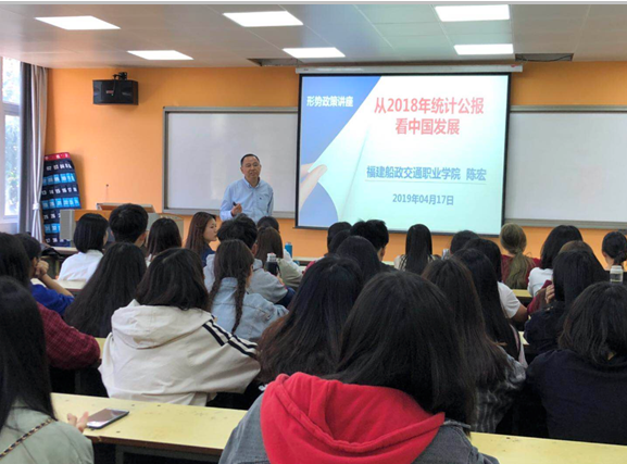 為貫徹落實《中共福建省委教育工委關于進一步規(guī)范高校形勢與政策課教育教學工作的通知》(閩委教思〔2017〕13 號)指出,“高校黨委書記、校長和院(系)黨組織書記、院長(系主任)每學期至少為學生作一次形勢政策報告”。根據(jù)《教社科廳函〔2019〕9號教育部辦公廳關于印發(fā)<高校“形勢與政策”課教學要點(2019年上輯)>的通知》,交通經(jīng)濟系主任于2019年4月17日15:50在31#307教室為交通經(jīng)濟系會計專業(yè)學生做了一場題為“從2018年統(tǒng)計公報看中國發(fā)展”的主題報告。報告上陳宏主任從十九大報告不忘初心,牢記使命,高舉中國特色社會主義偉大旗幟,決勝全面建成小康社會,奪取新時代中國特色社會主義偉大勝利,為實現(xiàn)中華民族偉大復興的中國夢不懈奮斗。中國共產(chǎn)黨人的初心和使命,就是為中國人民謀幸福,為中華民族謀復興。