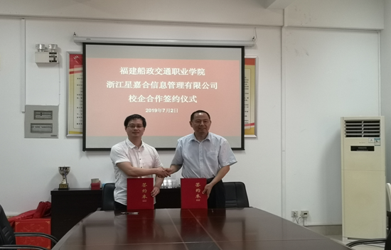 2019年7月2日,福建船政交通職業(yè)學(xué)院與浙江星嘉合信息管理有限公司在學(xué)院交通經(jīng)濟系六樓會議室舉行“校企合作簽約儀式”。交通經(jīng)濟系陳宏主任、財經(jīng)教研室全體教師以及浙江星嘉合信息管理有限公司陳熹總經(jīng)理、高校教務(wù)部陳聰騰經(jīng)理和產(chǎn)品部李杰經(jīng)理等企業(yè)代表出席共同出席簽約儀式。