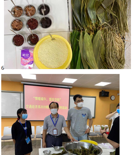 2020年的端午節(jié)注定是一個不尋常的節(jié)日,在18級同學(xué)返校復(fù)學(xué)封閉式管理期間,為讓同學(xué)們度過一個安全、健康、文明、快樂的端午節(jié)假期,結(jié)合我系實際情況,開展“情暖端午,愛在船政”端午節(jié)系列活動,利用中華傳統(tǒng)節(jié)日的契機,開展愛國主義主題教育,發(fā)揚中華優(yōu)秀傳統(tǒng)文化,讓廣大經(jīng)濟系學(xué)子即便不在家中依舊能感受到了節(jié)日的氛圍。參加活動的有交通經(jīng)濟系黨總支書記劉明,黨總支副書記林麗萍,輔導(dǎo)員鄧上清、張彩琴以及全體學(xué)生會干部。