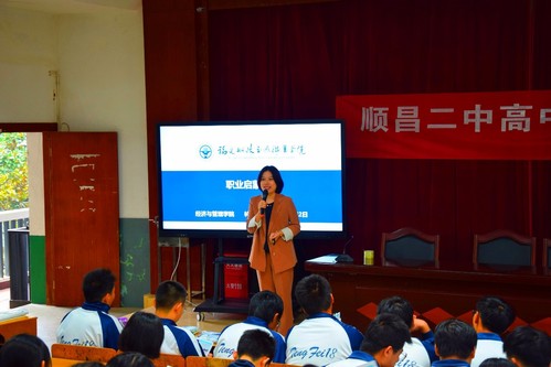 活動(dòng)分為主題講座和技能操練兩個(gè)部分,上午在順昌二中開(kāi)展了何為職業(yè)教育的講座以及經(jīng)濟(jì)與管理學(xué)院專業(yè)介紹,同時(shí)我們還邀請(qǐng)到福建省心理咨詢師協(xié)會(huì)副會(huì)長(zhǎng)徐藝端老師為同學(xué)分享了主題為“陽(yáng)光心態(tài)備戰(zhàn)高考”的主題講座。