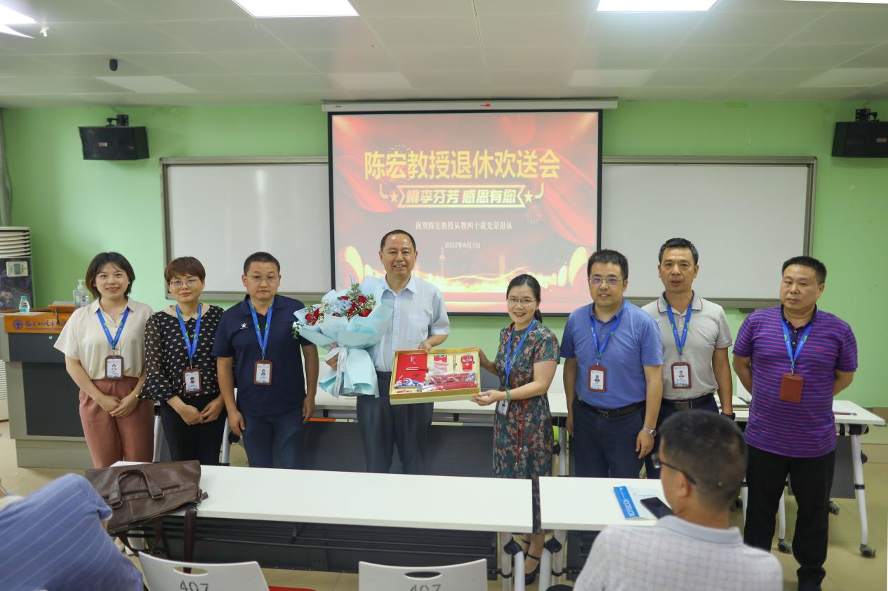 榮退儀式上,陳艷紅副院長代表學(xué)院黨委向陳宏教授頒發(fā)鮮花和紀(jì)念品,她說,退休老干部是學(xué)校事業(yè)發(fā)展的建設(shè)者、見證人,是學(xué)校的寶貴財(cái)富,正是他們的無私奉獻(xiàn),才有了學(xué)校今天的良好發(fā)展局面,希望陳宏教授在過好充實(shí)、精彩的退休生活的同時(shí),繼續(xù)關(guān)注學(xué)校,做好“傳幫帶”,為學(xué)校高質(zhì)量發(fā)展貢獻(xiàn)余熱。