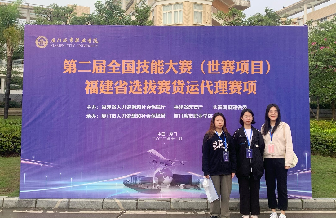 第二屆全國(guó)技能大賽(世賽項(xiàng)目)福建省選拔賽貨運(yùn)代理賽項(xiàng)于2022年11月25-26日在廈門城市職業(yè)學(xué)院舉行,在指導(dǎo)老師江瀟的帶領(lǐng)下,我院關(guān)務(wù)與外貿(mào)服務(wù)專業(yè)的學(xué)生曾婧虹和馮柯分別獲得第二名和第四名的好成績(jī)。