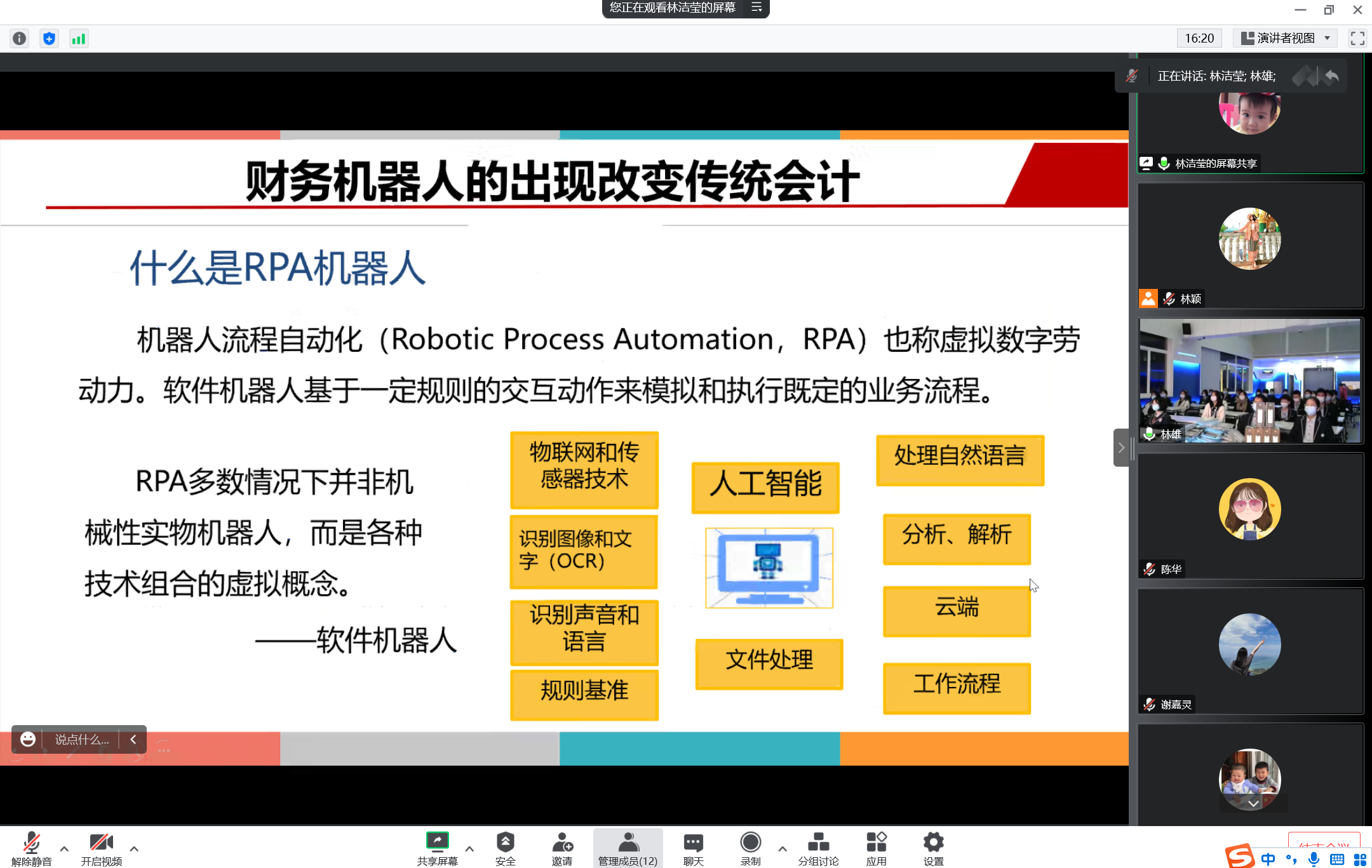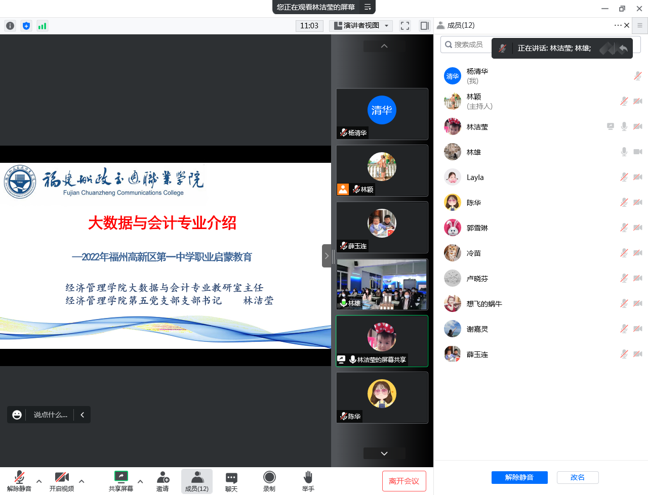 林潔瑩老師從專業(yè)的發(fā)展、專業(yè)的設(shè)置、行業(yè)企業(yè)的前沿以及職業(yè)崗位的發(fā)展前景等方面向同學們介紹了大數(shù)據(jù)與會計專業(yè),帶領(lǐng)同學們了解會計知識和技能是怎樣應(yīng)用于具體工作崗位的,從而更加明確當前學業(yè)與未來職業(yè)的關(guān)系,體會到學習的意義和價值?!?/span>