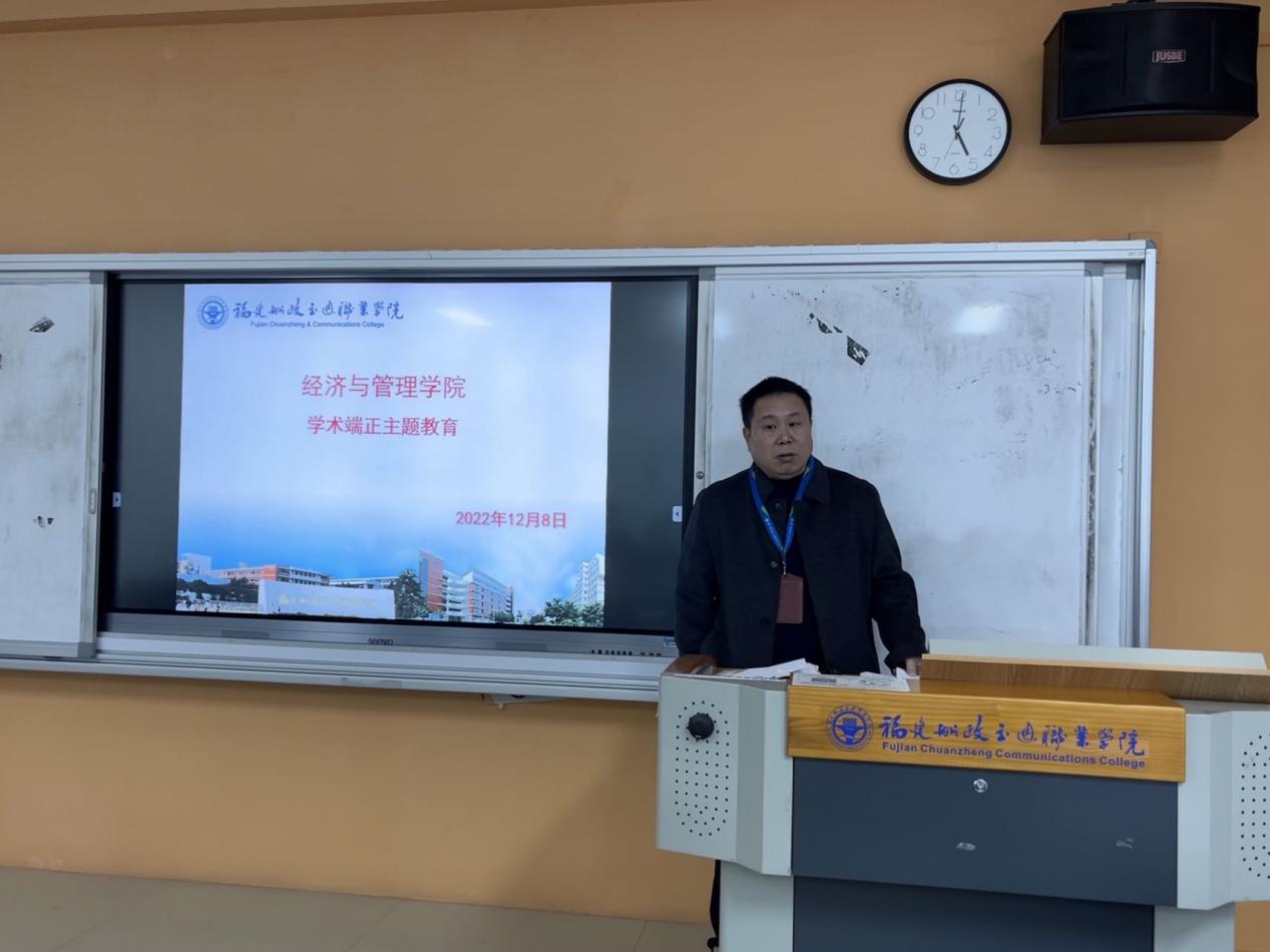 古語有云:“無規(guī)矩,不成方圓”。學術(shù)態(tài)度對于廣大教師具有重要的價值和作用。為加強經(jīng)濟與管理學院廣大教師學術(shù)態(tài)度,2022年12月8日上午9時,經(jīng)濟與管理學院吳吉明副院長在求實樓406教室為經(jīng)濟與管理學院教師開展了一場端正學術(shù)態(tài)度,遵守學術(shù)規(guī)范教育大會,經(jīng)濟與管理學院全體教師準時到場參加。