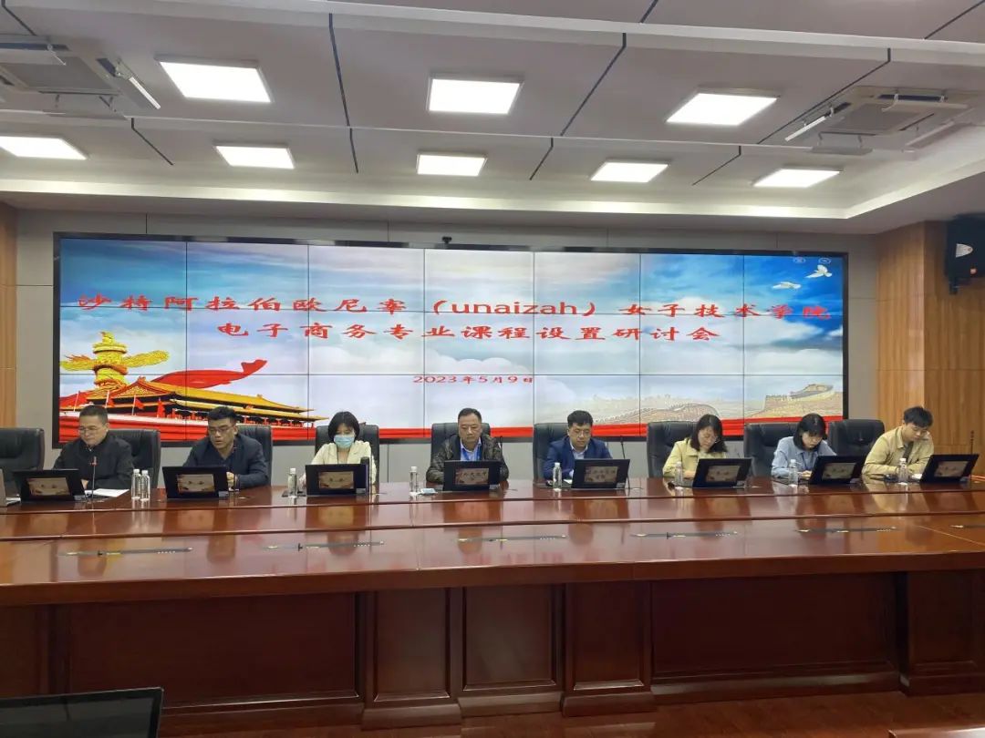 2023年5月9日,我院召開沙特阿拉伯歐尼宰(unaizah)女子技術(shù)學(xué)院(下稱歐尼宰學(xué)院)電子商務(wù)專業(yè)課程設(shè)置線上視頻研討會,會議由中航國際成套設(shè)備有限公司(下稱中航國際)沙特辦事處曾春萌主持。三方圍繞歐尼宰學(xué)院電商專業(yè)辦學(xué)前景、現(xiàn)有電子商務(wù)專業(yè)課程體系及電子商務(wù)實(shí)驗(yàn)室建設(shè)展開了討論。