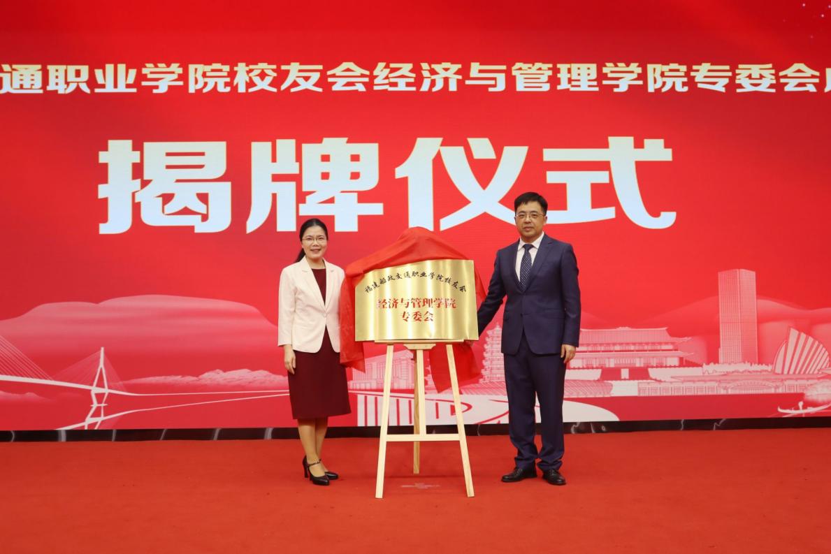 學(xué)院黨委委員、副院長、校友會會長陳艷紅,經(jīng)濟與管理學(xué)院院長房曰榮為福建船政交通職業(yè)學(xué)院校友會經(jīng)濟與管理學(xué)院專委會成立進行揭牌。