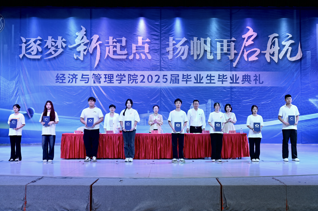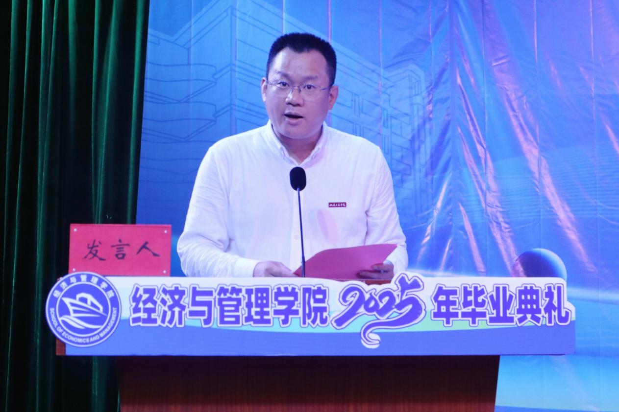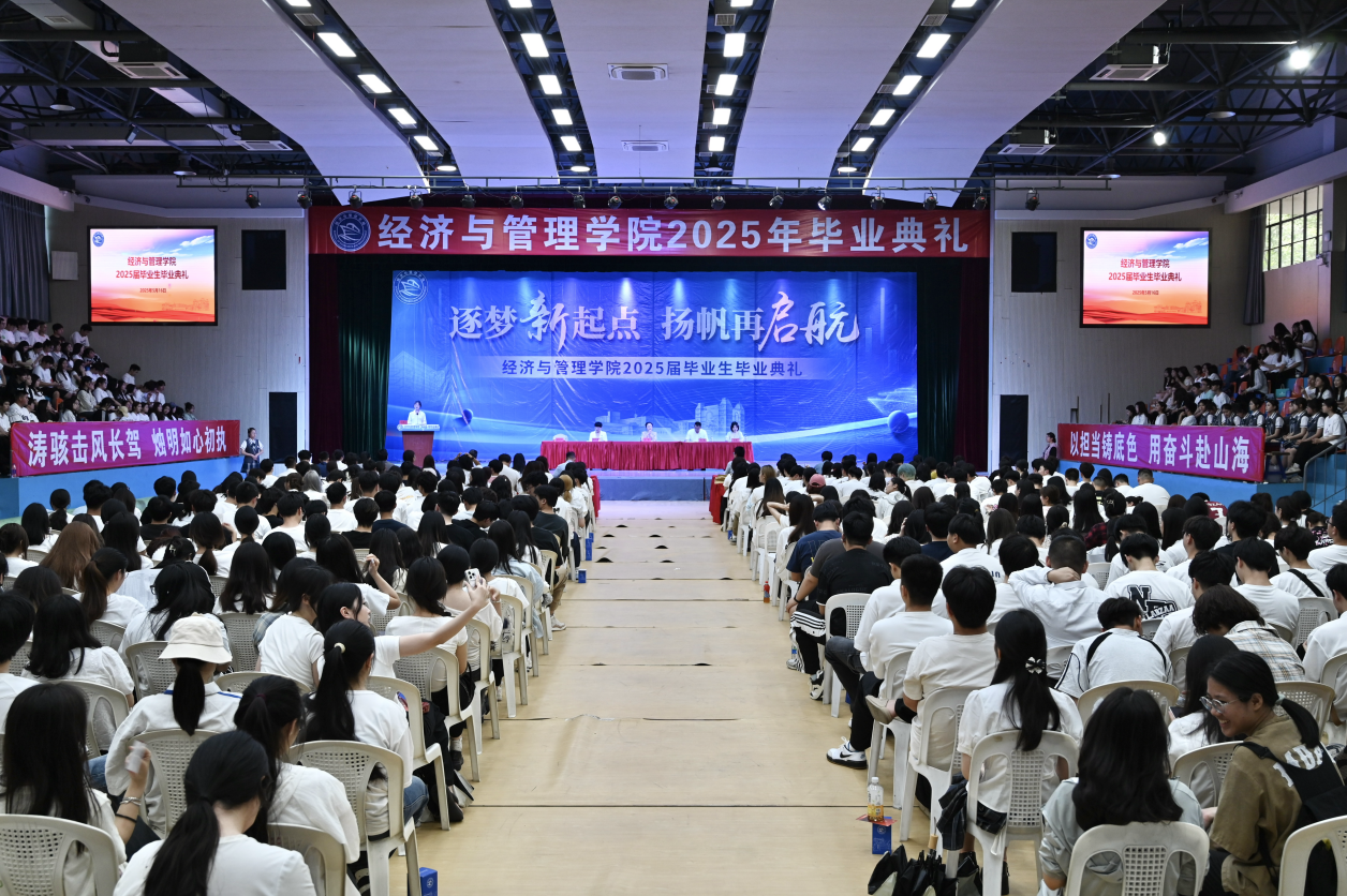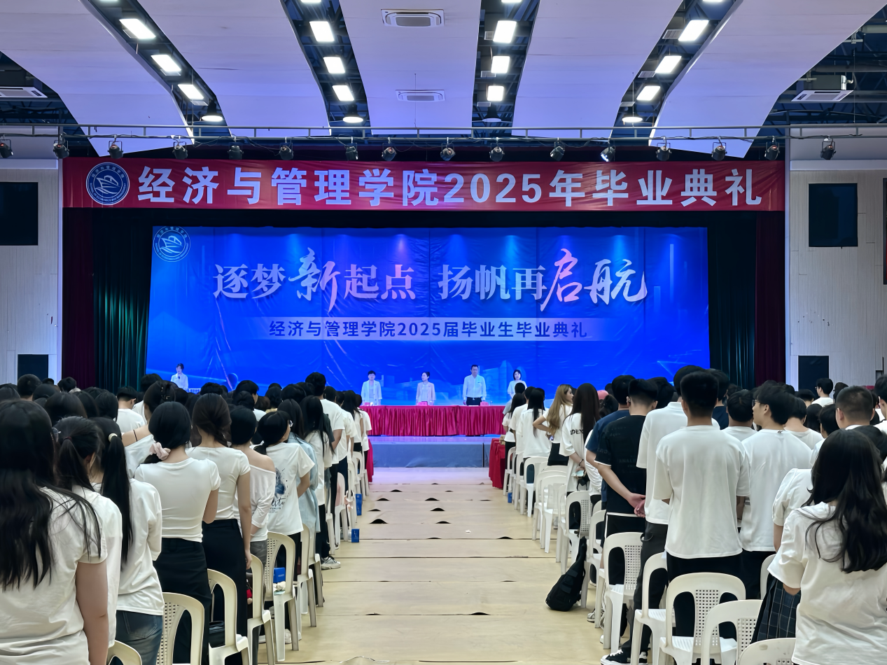 2025年5月16日下午,經(jīng)濟與管理學院 2025 屆畢業(yè)典禮在文體中心舉行。經(jīng)濟與管理學院黨政領導、各教研室主任、畢業(yè)班輔導員、班主任、校友代表及 2025屆全體畢業(yè)生參加典禮。典禮由學院團委書記傅一丹主持。