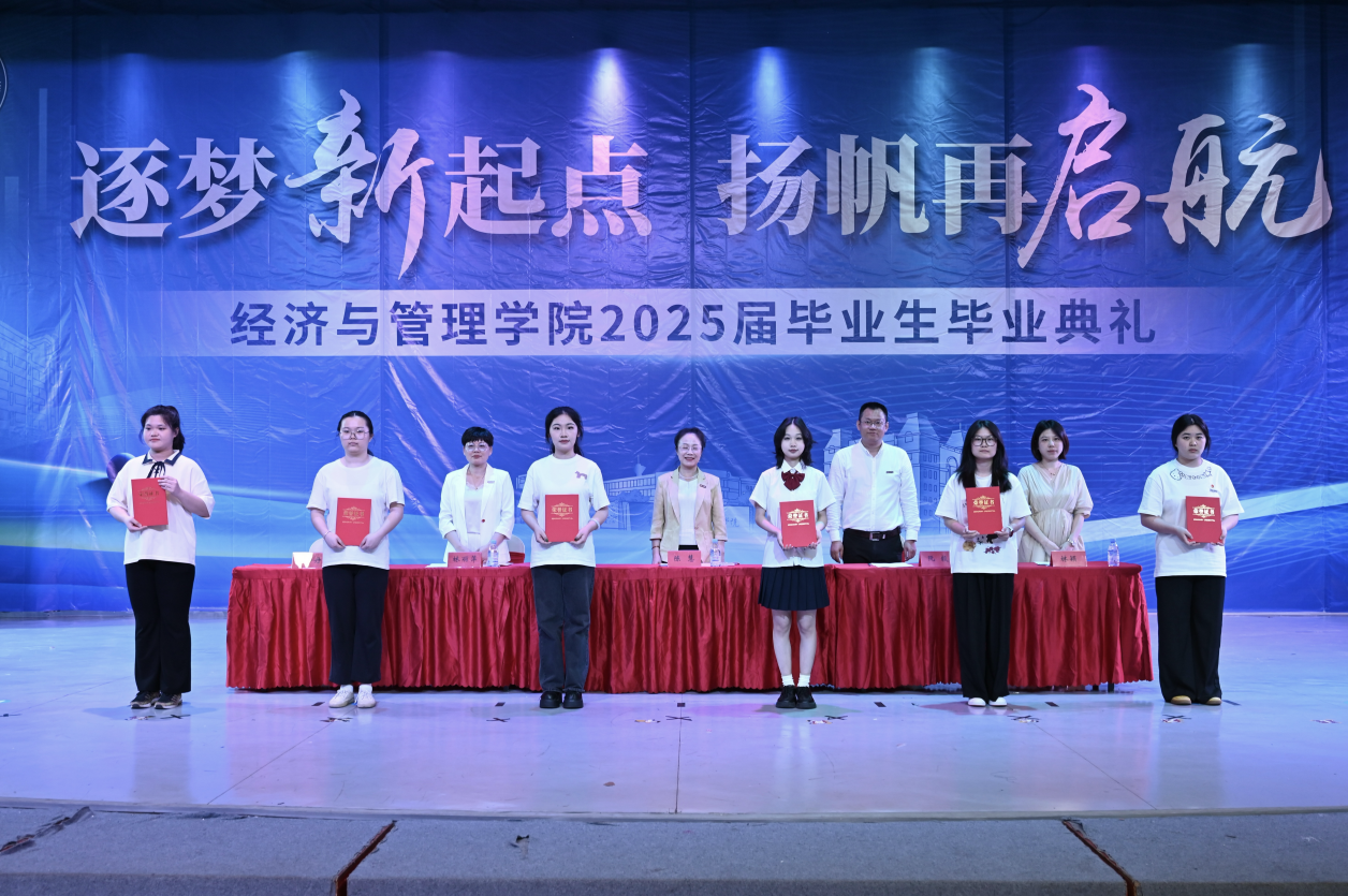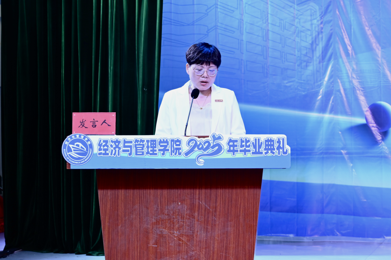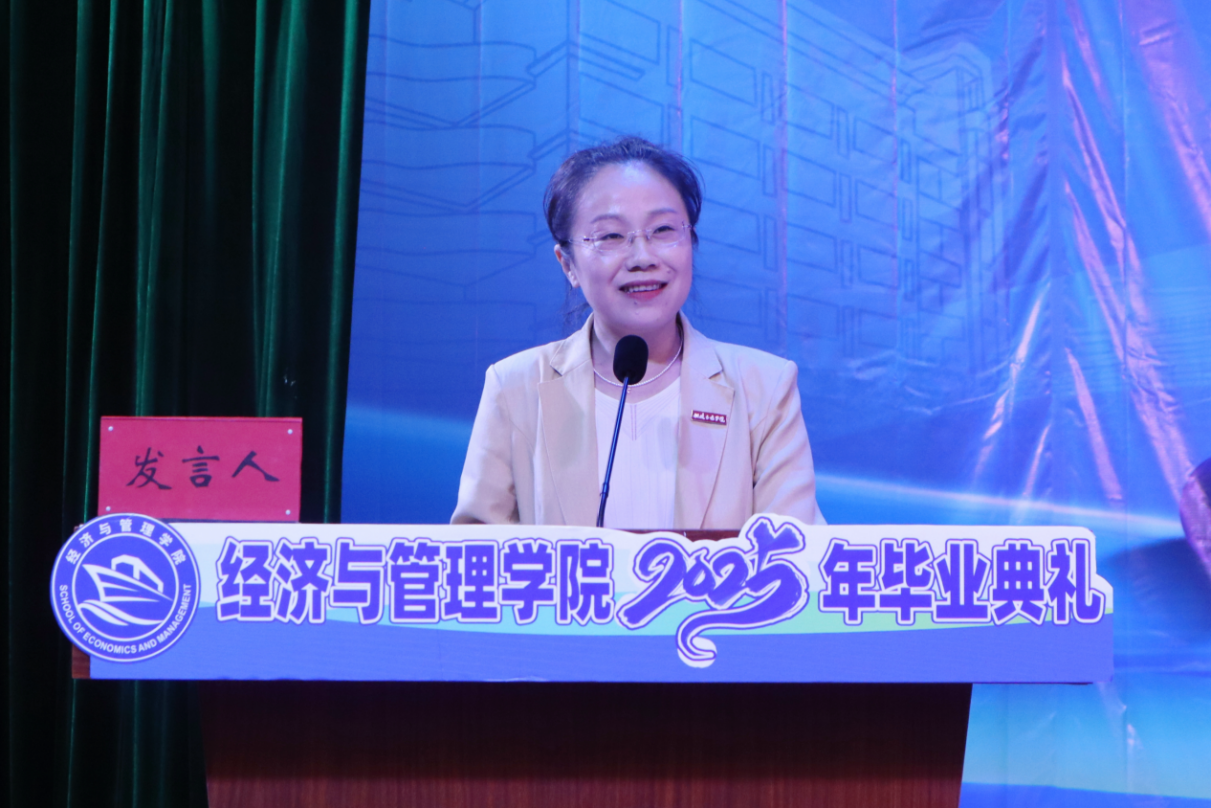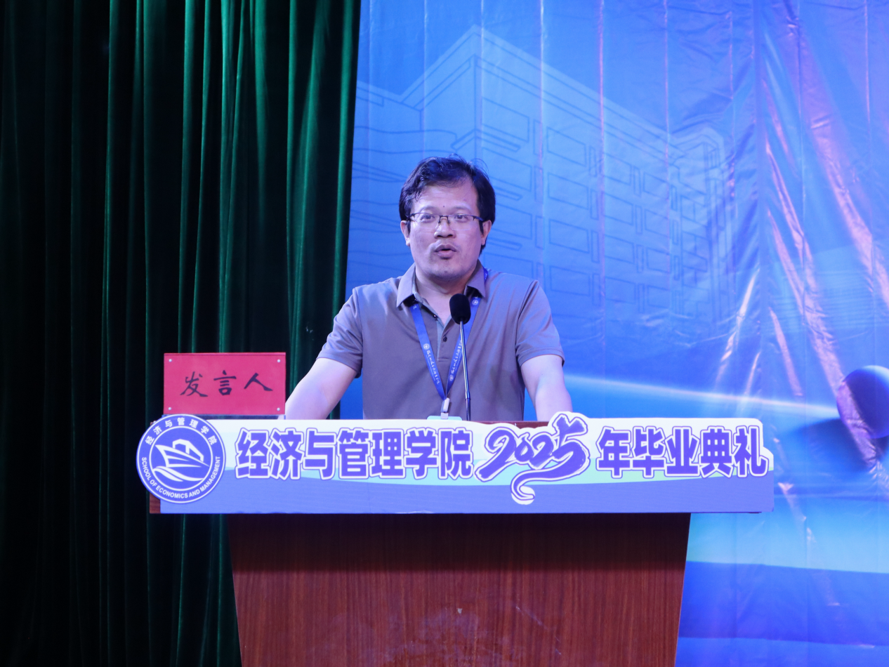 2025年5月16日下午,經(jīng)濟與管理學院 2025 屆畢業(yè)典禮在文體中心舉行。經(jīng)濟與管理學院黨政領導、各教研室主任、畢業(yè)班輔導員、班主任、校友代表及 2025屆全體畢業(yè)生參加典禮。典禮由學院團委書記傅一丹主持。