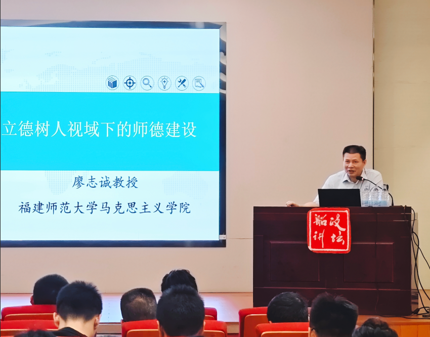為深化師德師風建設(shè),筑牢教師育人初心,11月7日,我院邀請福建師范大學馬克思主義學院廖志誠教授,開展以“立德樹人視域下的師德建設(shè)”為主題的專題講座,全體教職工參會學習。