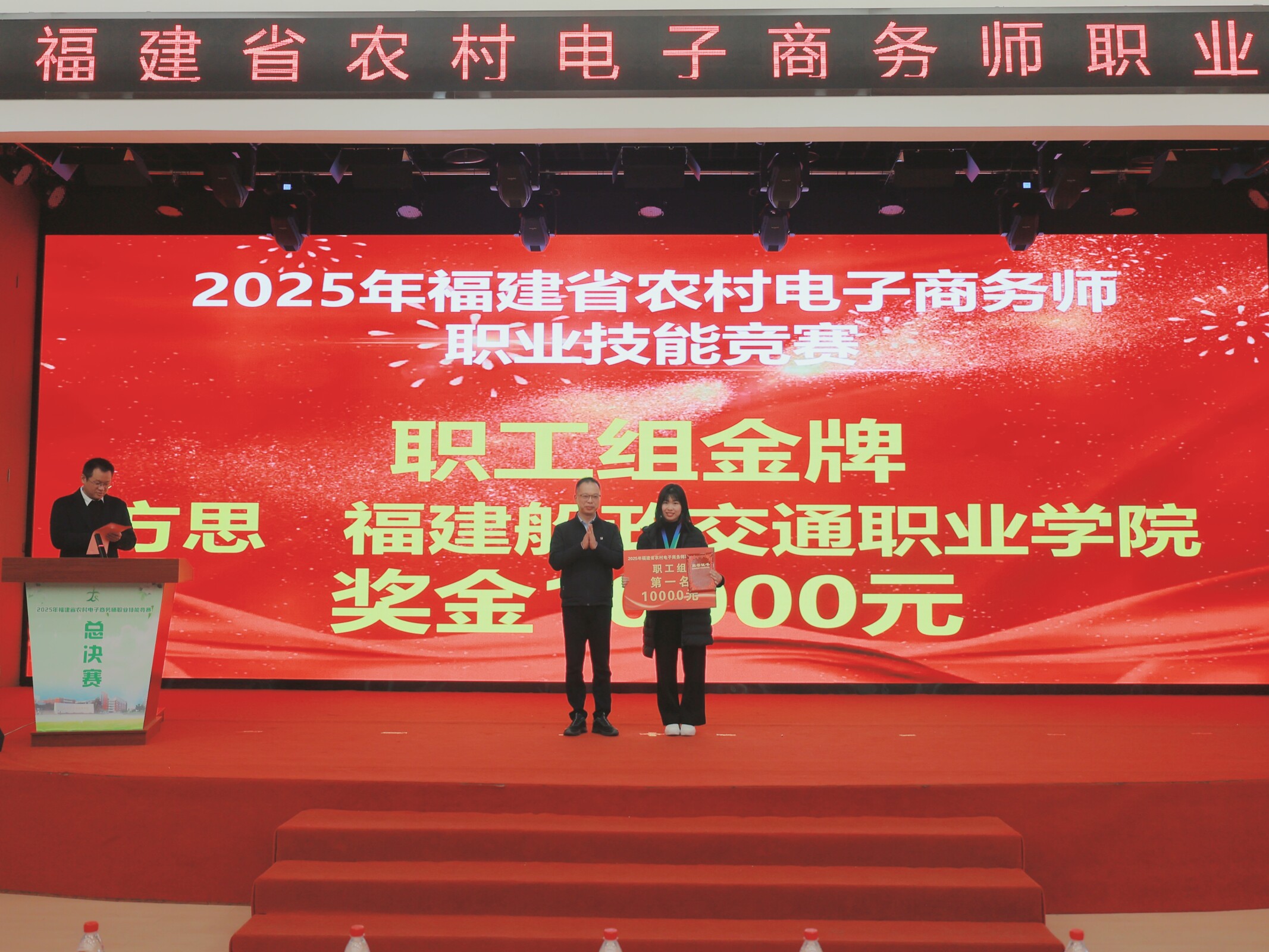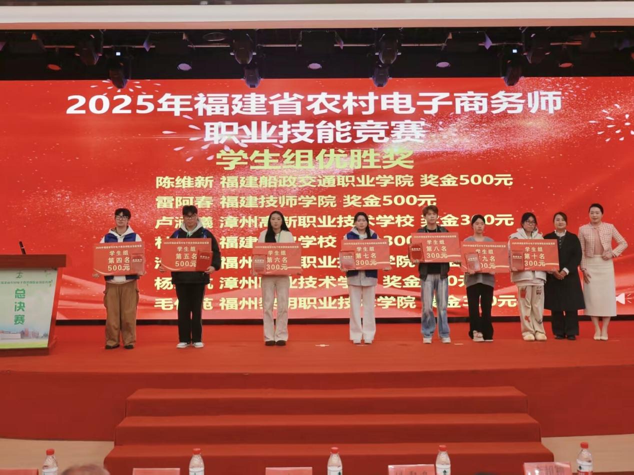 2026年1月10日-11日,由福建省商務(wù)廳、福建省人力資源和社會(huì)保障廳、福建省教育廳、福建省總工會(huì)、共青團(tuán)福建省委聯(lián)合主辦,福建船政交通職業(yè)學(xué)院經(jīng)濟(jì)與管理學(xué)院承辦的2025年福建省農(nóng)村電子商務(wù)師職業(yè)技能競(jìng)賽圓滿落幕。學(xué)校憑借周密的組織安排與高效的賽事服務(wù),保障了競(jìng)賽全程嚴(yán)謹(jǐn)有序、公平公正,獲得主辦單位及各參賽隊(duì)伍的高度認(rèn)可。我院選派師生在比賽中表現(xiàn)突出,方思老師榮獲大賽第一名(金獎(jiǎng)),黃鈺淇老師與學(xué)生陳偉鑫均獲得優(yōu)勝獎(jiǎng),實(shí)現(xiàn)了賽事承辦與競(jìng)賽成績(jī)的雙重豐收。