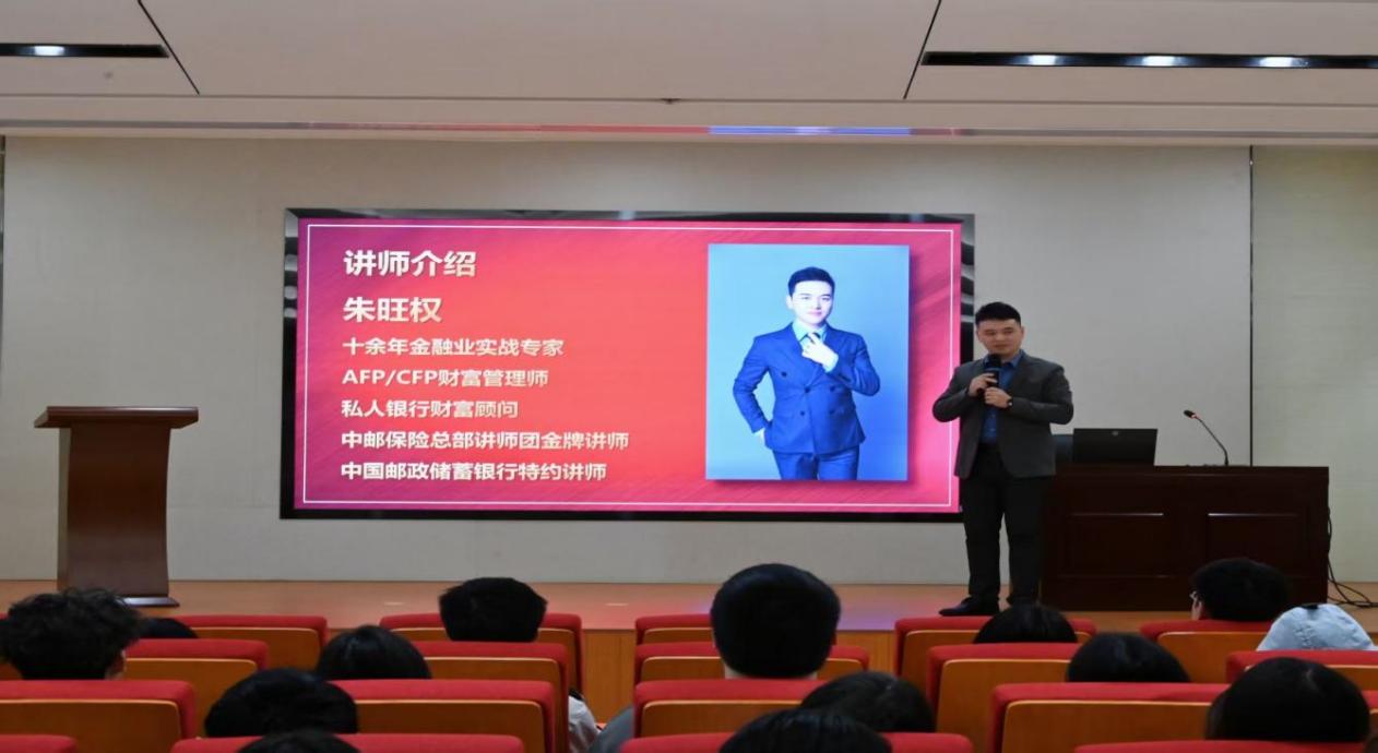 本次講座特邀擁有十余年金融業(yè)實戰(zhàn)專家、AFP/CFP財富管理師、中郵保險總部金牌講師朱旺權(quán)講師擔(dān)任主講人。朱旺權(quán)講師以財商小測試切入,結(jié)合利率走勢、人口老齡化等背景分析大學(xué)生理財必要性,講解投資理財概念與資產(chǎn)配置方法,重點解讀標(biāo)準(zhǔn)普爾家庭資產(chǎn)象限圖,剖析各類投資風(fēng)險,并圍繞養(yǎng)老三支柱分享財富規(guī)劃思路,同時拆解金融詐騙手段、傳授防范技巧。講座尾聲設(shè)置互動答疑環(huán)節(jié),同學(xué)們積極提問,講師細(xì)致解答,現(xiàn)場交流氣氛熱烈。